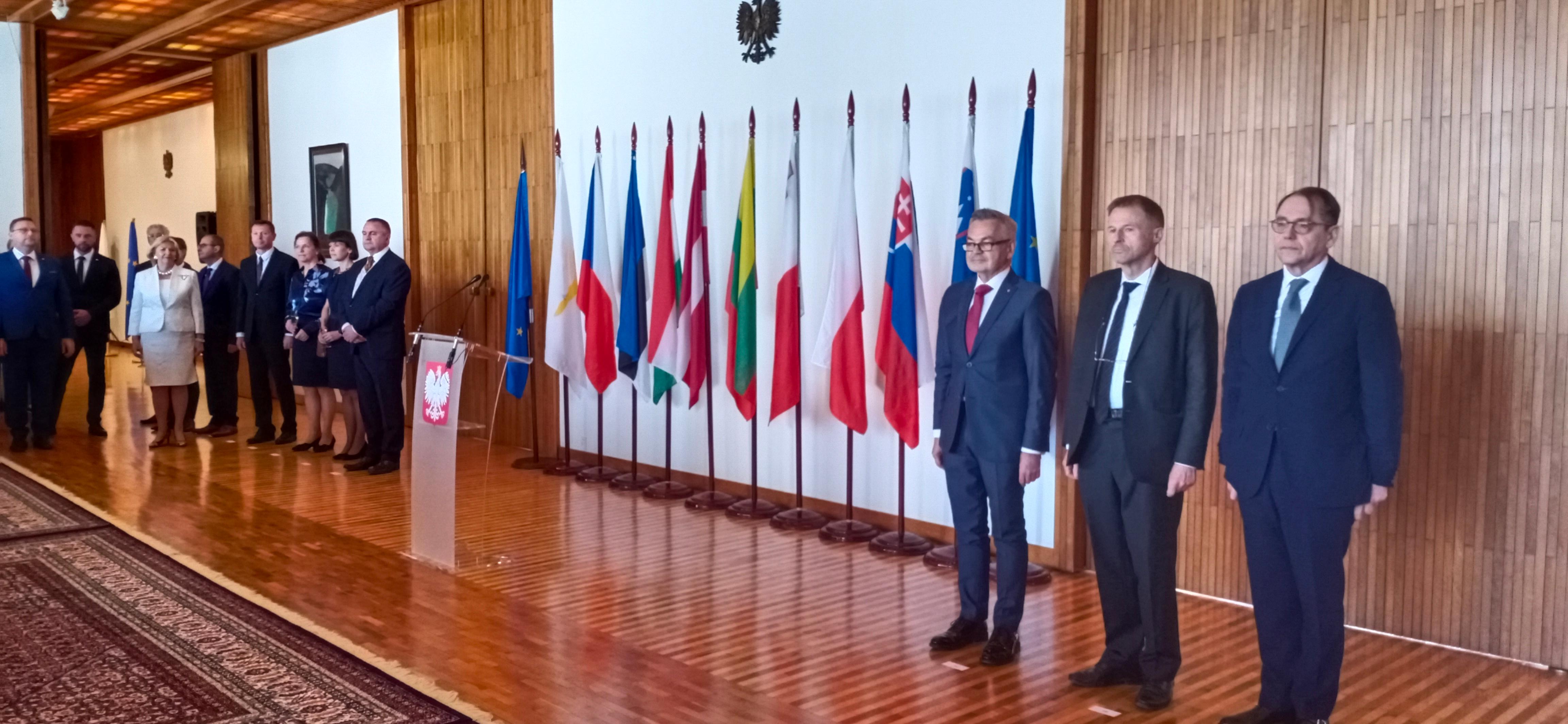 Ambasador Krzysztof Krajewski uroczyście powitał zebranych gości, otwierając wydarzenie. W swoim wystąpieniu Ambasador zwrócił uwagę na drogę dziesięciu krajów, które w 2004 roku przystąpiły do Unii Europejskiej oraz na wspólne dążenie do wartości takich jak pokój, stabilność i dobrobyt. Jednocześnie Ambasador podkreślił, że pomimo rozwoju, swobody podróżowania i pracy, czas bywa również niełatwy i nie wolny od trudności i kryzysów, które można przezwyciężyć na drodze kompromisu i wzajemnego porozumienia. «Razem jesteśmy silniejsi siłą każdego kraju, mądrzejsi zbiorową mądrością każdego narodu», – powiedział Ambasador.