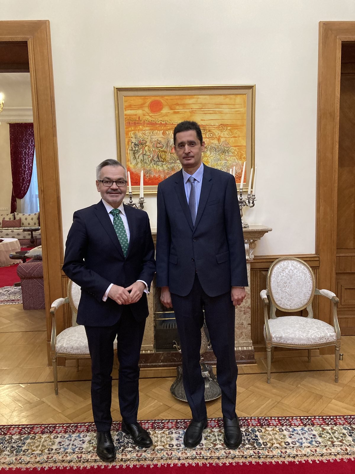 01.02. Ambasador Krzysztof Krajewski złożył wizytę Ambasadorowi Królestwa Marokańskiego w Federacji Rosyjskiej Lotfi Bouchaara. Dziękuję Ambasadorowi za bardzo interesującą konwersację.