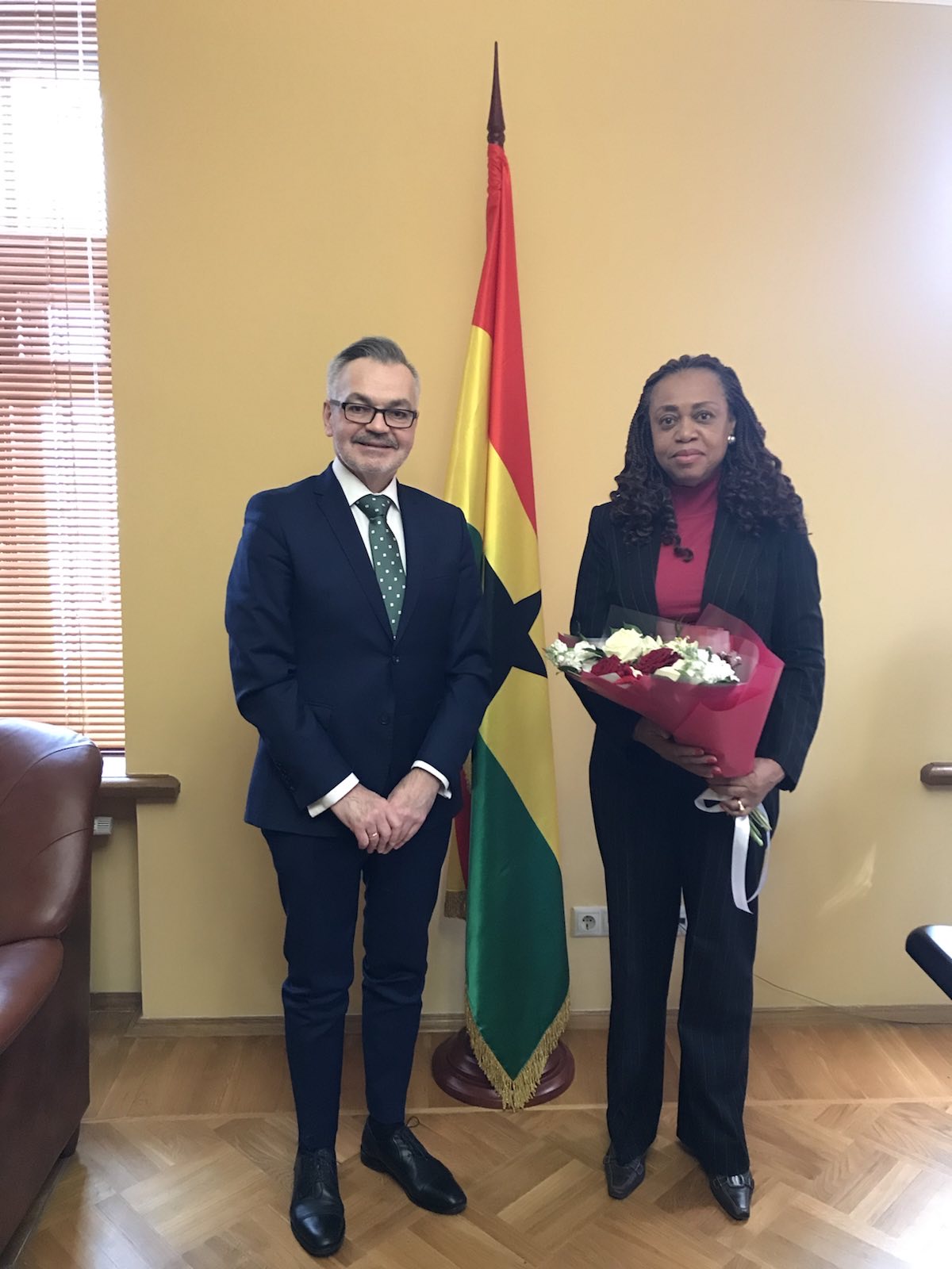 21.02. Ambasador Krzysztof Krajewski spotkał się z Ambasador Republiki Ghany Lesley Akyaa Opoku-Ware. Świetna rozmowa w bardzo dobrej atmosferze.