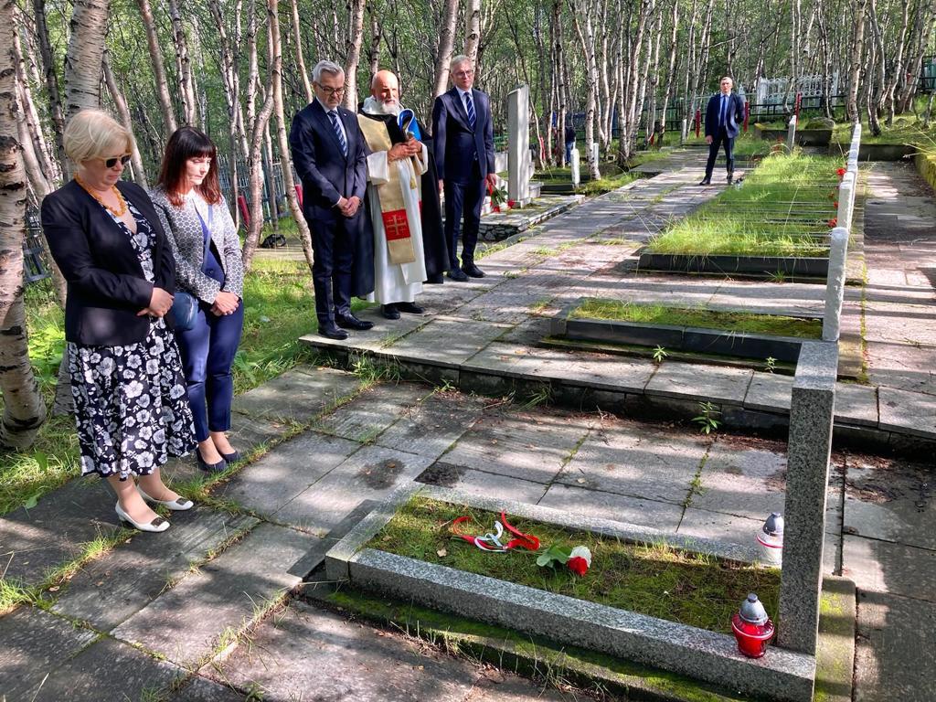 Polska delegacja zapaliła także znicze na kwaterach polskich żołnierzy i marynarzy na miejscowym cmentarzu wojennym. Spoczywa tam 8 Polaków - członków załogi niszczyciela ORP Garland i statku SS Tobruk, którzy brali udział w konwojach arktycznych. Ambasador oddał hołd rownież wojskowym innych narodowości poległych w alianckich konwojach. W uroczystości uczestniczyli Konsul Generalny RP w Sankt Petersburgu oraz p.o. dyrektora Instytutu Polskiego w Sankt Petersburgu.