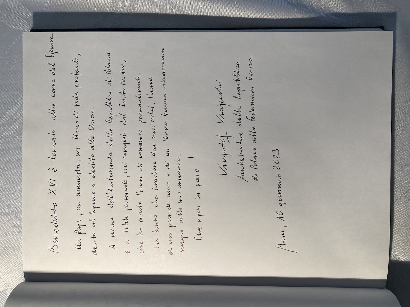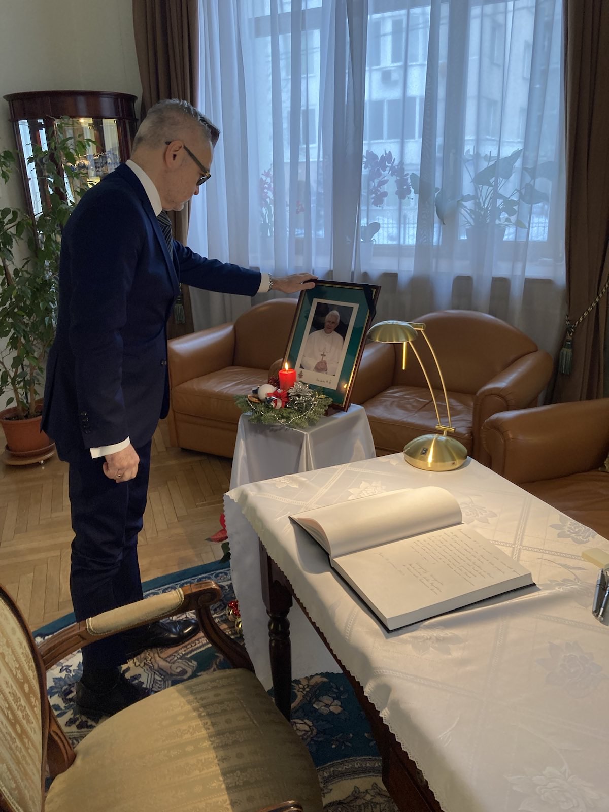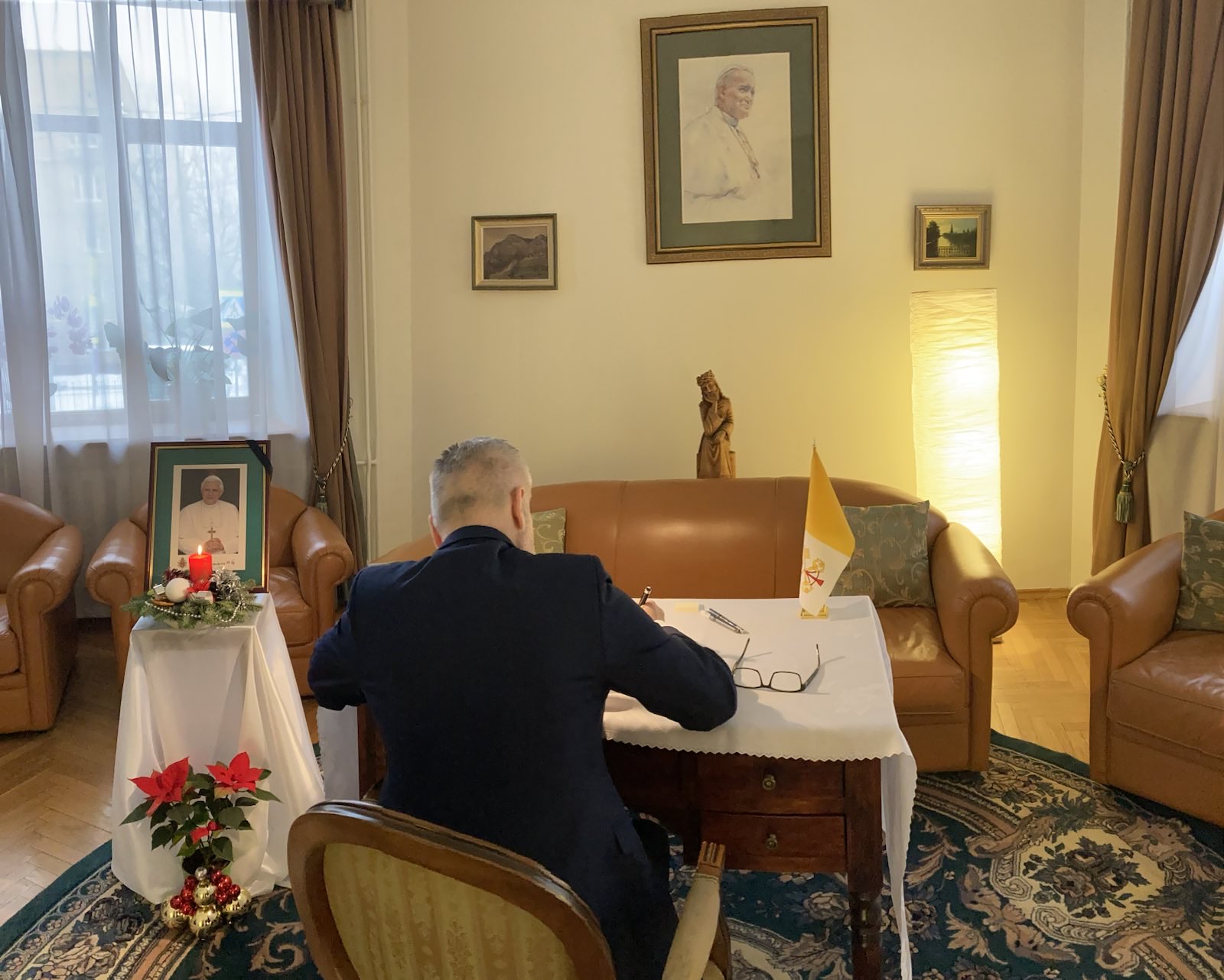 10.01. Ambasador Krzysztof Krajewski złożył wizytę w Nuncjaturze Apostolskiej w Moskwie, gdzie uczcił pamięć zmarłego Papieża Benedykta XVI dokonując wpisu w księdze kondolencyjnej.