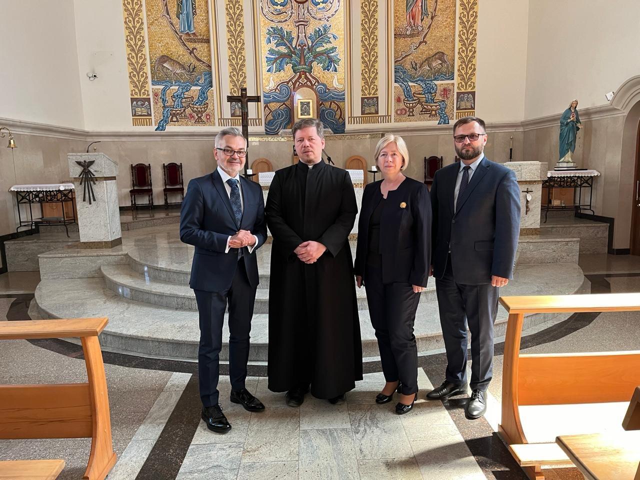 W ramach wizyty w Kazaniu, Ambasador RP w Federacji Rosyjskiej Krzysztof Krajewski wraz z małżonką Aldoną Krajewską odwiedził rzymskokatolicki kościół Podwyższenia Krzyża Świętego, gdzie złożył kwiaty przed figurami Matki Bożej Fatimskiej i Matki Bożej z Luján.