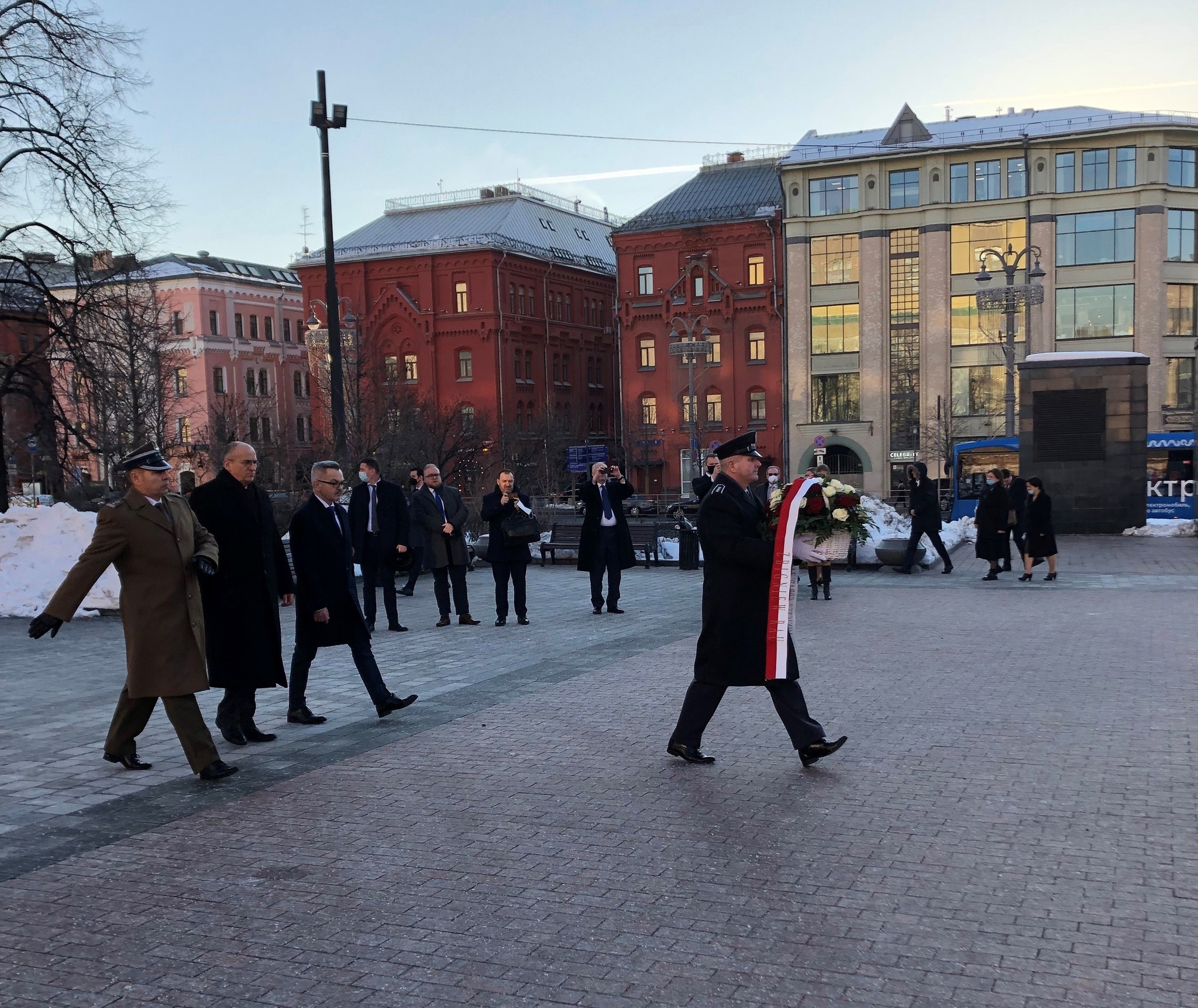 Minister, w towarzystwie ambasadora Krzysztofa Krajewskiego, oddał hołd ofiarom represji politycznych, składając kwiaty pod Ścianą Boleści i Kamieniem Sołowieckim na Łubiance.