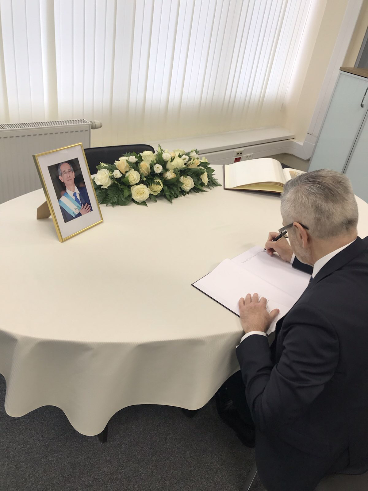 26.01. Ambasador Krzysztof Krajewski uczcił pamięć zmarłego byłego Prezydenta Republiki Gwatemala Alvaro Colom Caballeros, dokonując wpisu w księdze kondolencyjnej.