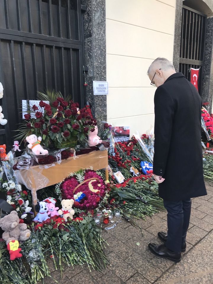 10.02. br. Ambasador Krzysztof Krajewski wpisał się do księgi kondolencyjnej w Ambasadzie Republiki Tureckiej i przekazał wyrazy współczucia i solidarności w osobistej rozmowie z Ambasadorem Mehmetem Samsarem.