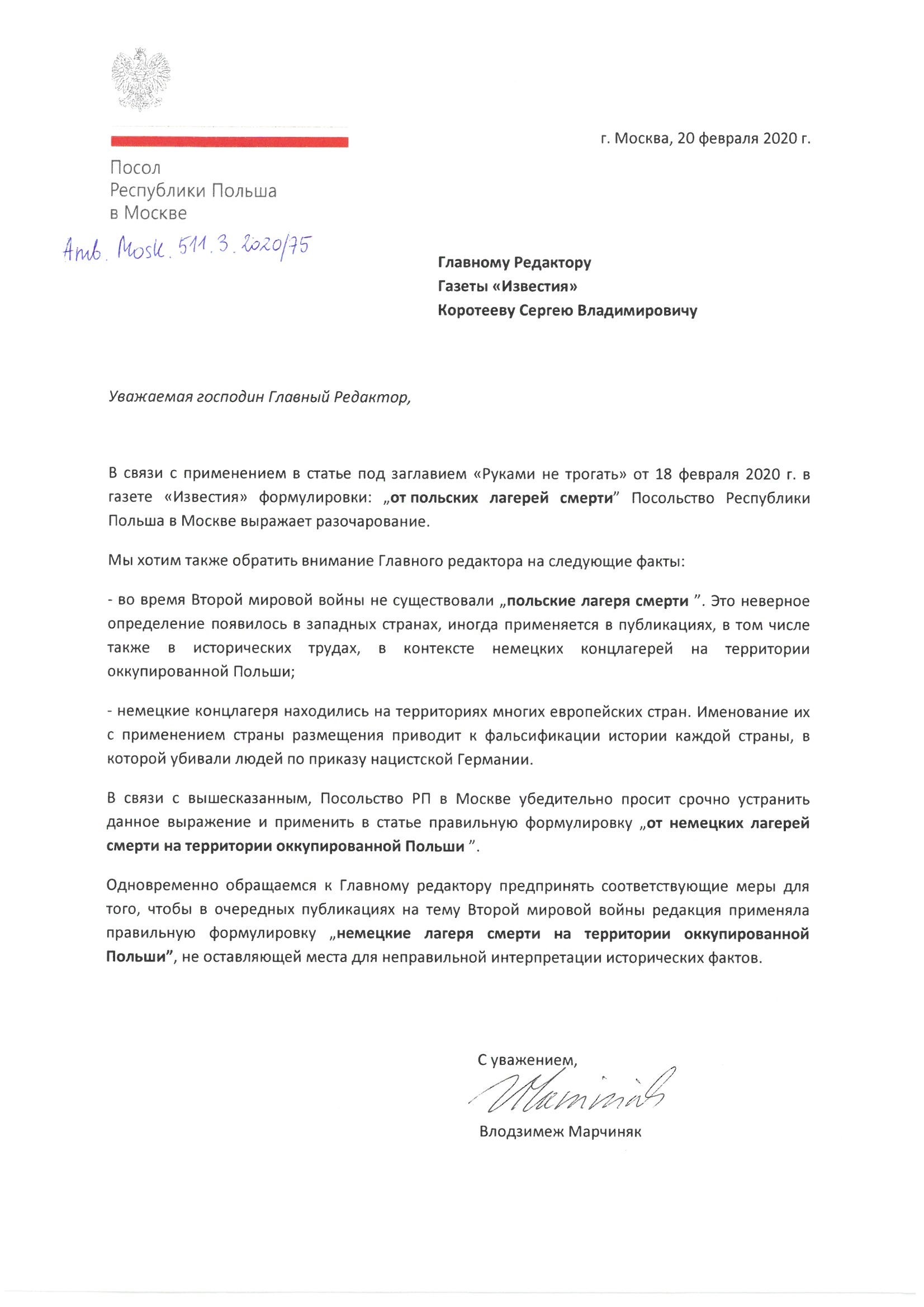 письмо Посла РП Влодзимежа МарчинякаList_izviestia_20022020.jpg 0.43MB