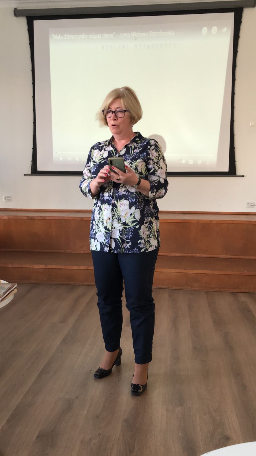 В рамках встречи состоялась интересная беседа через Интернет с г-ном Михалом Русинеком, председателем правления Фонда Виславы Шимборской, который в 1996-2012 годах был секретарем Виславы Шимборской. Михал Русинек поделился с участниками встречи своими воспоминаниями, связанными с сотрудничеством с великой поэтессой, приводя интересные, иногда анекдотические факты из ее жизни.