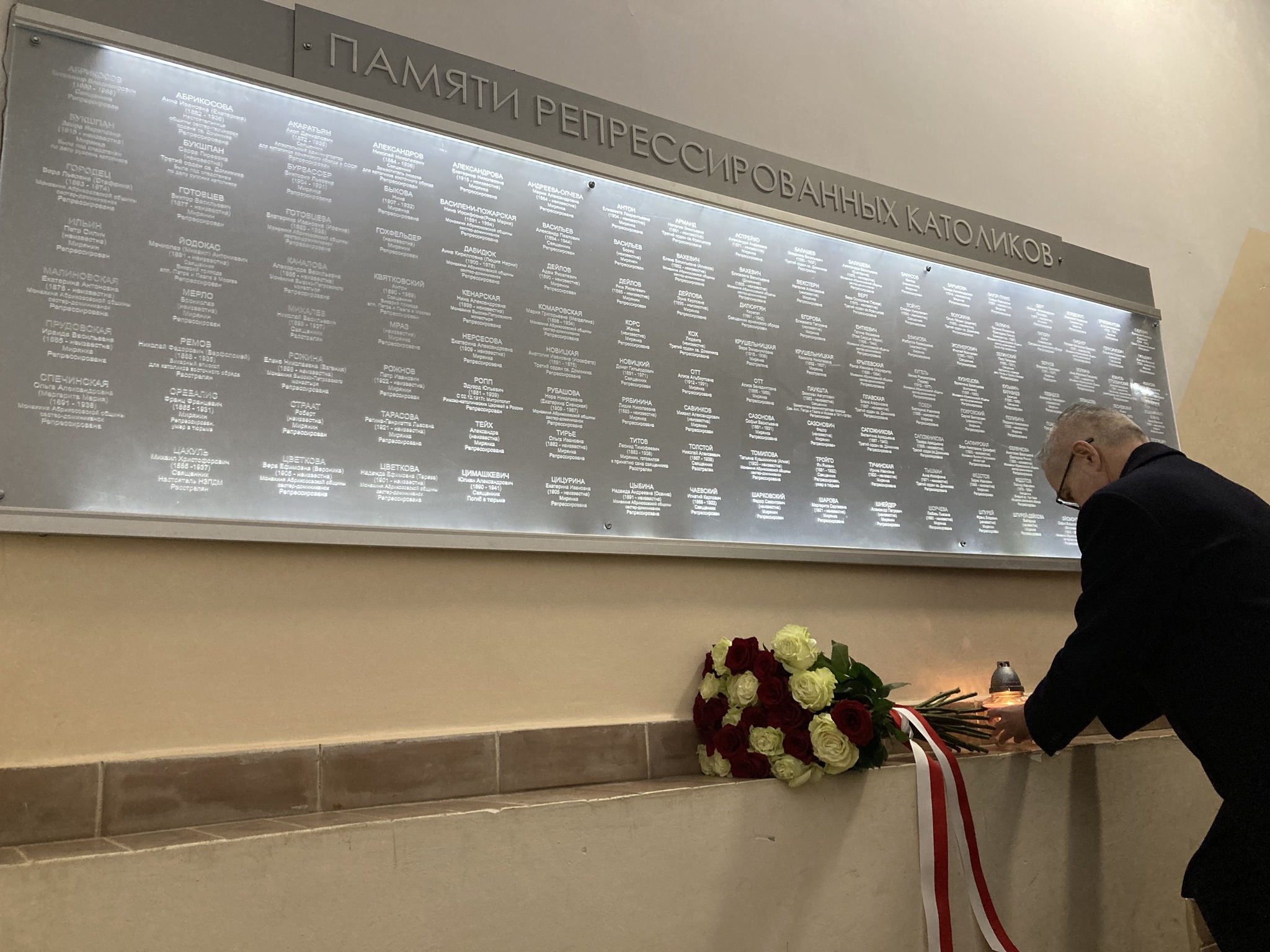 Посол почтил память жертв политических репрессий времен СССР, возлагая цветы и зажигая свечи к Соловецкому камню (в память о жертвах сталинских репрессий в СССР), к «Стене скорби» (в память о большевистских и сталинских жертвах), к символическим могилам последнего коменданта Армии Крайовой генерала Леопольда Окулицкого и Яна Янковского, делегата Правительства на Родине, на Донском кладбище, а также к доске, посвященной репрессированным католикам, в крипте собора Непорочного зачатия Пресвятой Девы Марии.