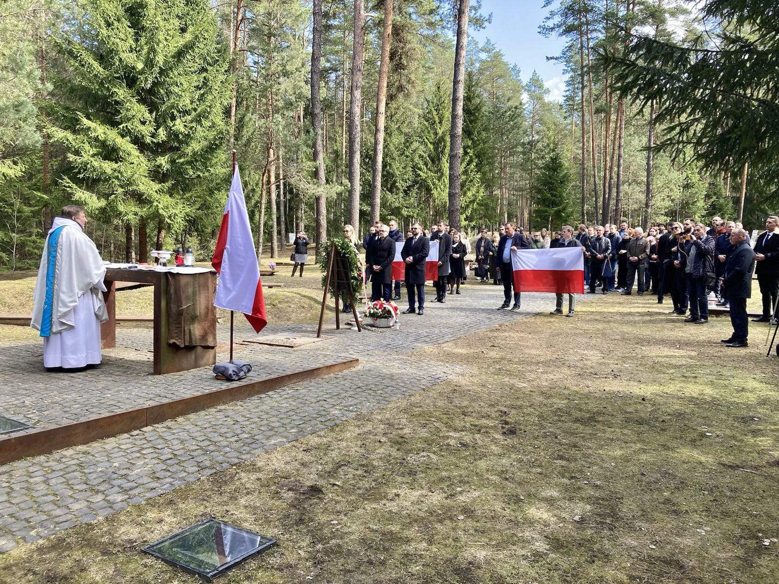 На Польском военном кладбище в Катыни Посол зажег свечу и возложил цветы и пасхальную вербу, которая является не только символом мученичества, но и символом триумфа жизни над смертью. После Святой Мессы, которую отслужил отец Птолемеуш, участники делегации зажгли свечи на могилах жертв. Посол возложил бело-красные-цветы к стене памяти.