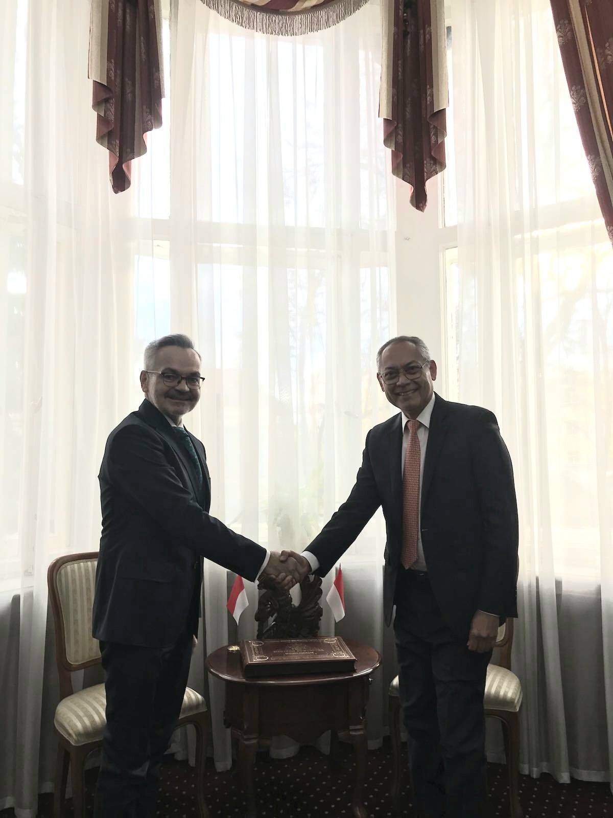 31.10. Посол Кшиштоф Краевски встретился с Послом Республики Индонезия Хосе Антонио Морато Таваресом 31.10.2022 Очень интересный разговор! Фото (2) Покажите фото 1 в галерее. Покажите фото 2 в галерее.