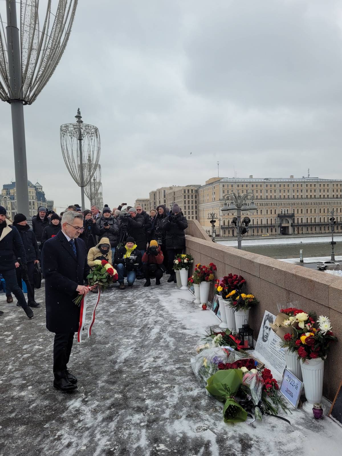Посол Республики Польша в Российской Федерации Кшиштоф Краевски вместе с послами стран ЕС, НАТО и like-minded, возложил цветы к месту трагической смерти российского оппозиционера – на Большом Москворецком мосту.