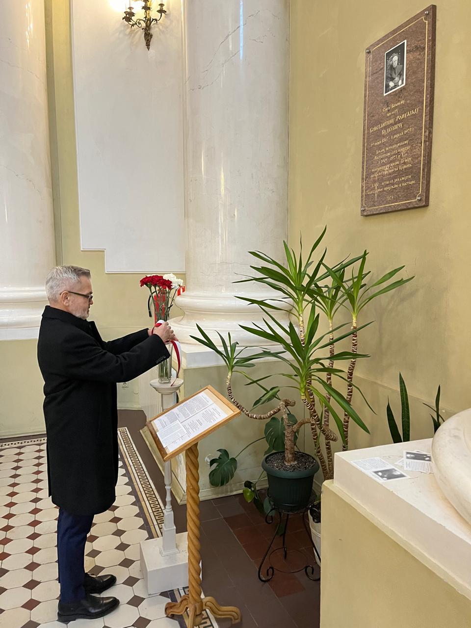 После службы Посол возложил цветы к мемориальной доске в память зверски убитого в застенках ГПУ священника Константина Будкевича и к надгробию последнего короля Польши Станислава Августа Понятовского.
