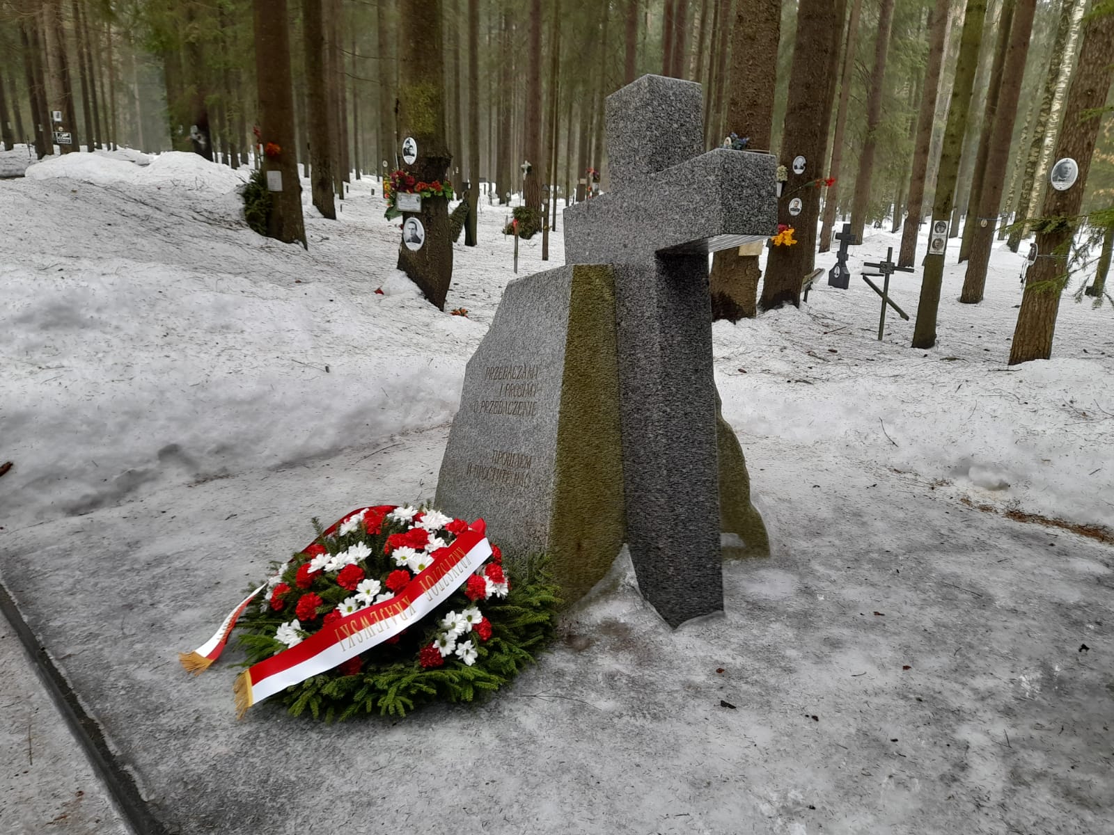 Польский памятный знак появился здесь одним из первых. Установленный в 1993 г. наклонный каменный крест, опирающийся на гранитную глыбу с надписью на польском и русском языках «Прощаем и простите нас», благодаря усилиям Совета охраны памяти борьбы и мученичества в Варшаве 5 лет спустя был дополнен гранитной стелой с изображением орла и двуязычной надписью «Памяти поляков – жертв массовых репрессий, расстрелянных в 1937–1938 гг. Соотечественники».