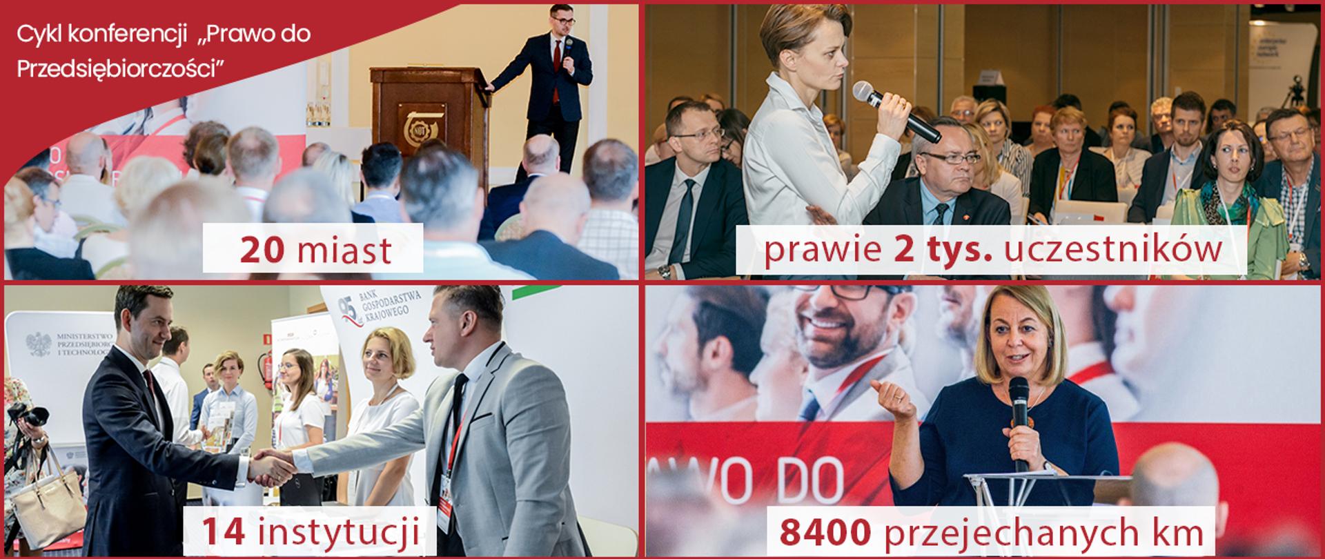 Ministerstwo Przedsiębiorczości i Technologii wspólnie z Polską Agencją Rozwoju Przedsiębiorczości zrealizowało drugą edycję spotkań dla przedsiębiorców „Prawo do Przedsiębiorczości – małe firmy, wielkie zmiany”. Za nami 20 konferencji w największych miastach w Polsce. Spotkania prawie 2 tys. przedsiębiorców, kilkudziesięciu prelegentów i ekspertów z 14 instytucji państwowych. Setki rozmów oraz tysiące pytań i odpowiedzi podczas prezentacji i indywidualnych konsultacji – wszystko o ułatwieniach dla firm.
