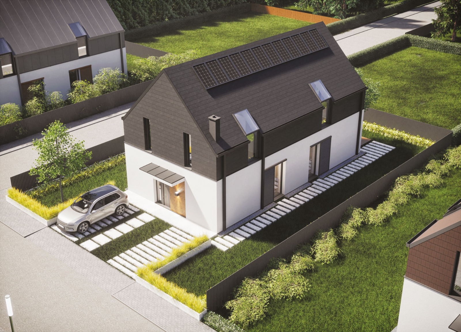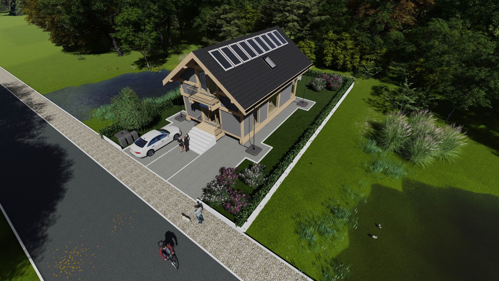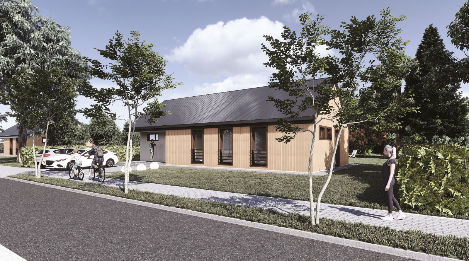 - dom mieszkalny jednorodzinny z poddaszem użytkowym zaprojektowany w technologii tradycyjnej, niskoenergetyczny, o powierzchni użytkowej 150 m2: Hornik Chmura Architektura sp. z o.o.;
