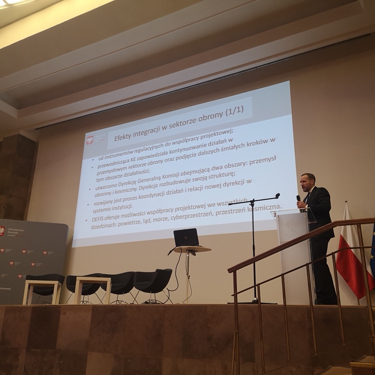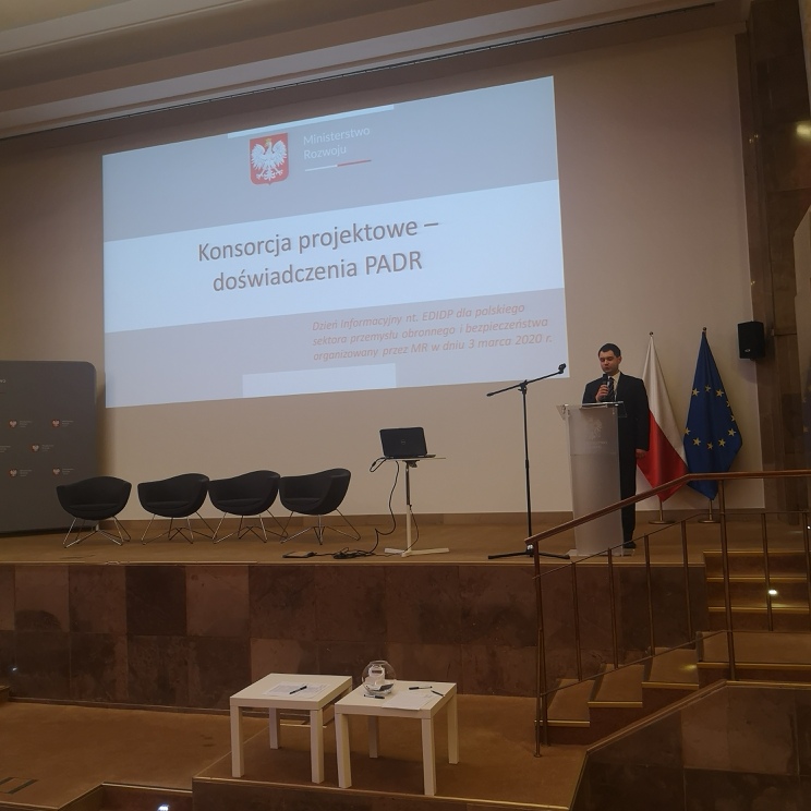 3 marca br. w ramach działań prowadzonych przez Ministerstwo Rozwoju na rzecz promocji polskiego sektora przemysłu obronnego i bezpieczeństwa w relacjach europejskich odbyło się spotkanie z przedstawicielami ponad 50 podmiotów tego sektora poświęcone kojarzeniu konsorcjów oraz aktywnemu udziałowi we współpracy projektowej w ramach części pilotażowej Europejskiego Funduszu Obronnego, tj. Europejskiego Programu Rozwoju Przemysłu Obronnego (ang. European Defence Industrial Development Programme – EDIDP).