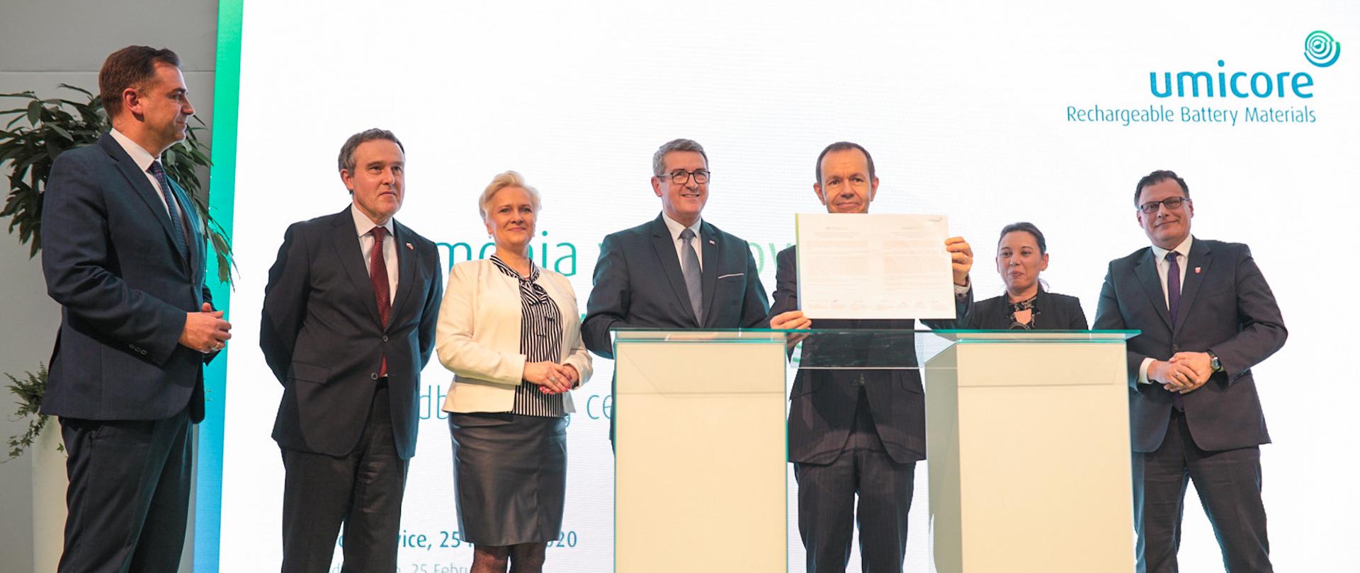 W ceremonii wmurowania kamienia węgielnego pod tę inwestycję uczestniczył wiceminister rozwoju Wojciech Murdzek. Jak podkreślił: - Ta inwestycja jest ważna dla polskiego rządu oraz dla dalszego rozwoju naszej, a także unijnej gospodarki. Dzięki niej jeszcze w tym roku powstanie pierwsza tego typu fabryka w Europie i trzecia na świecie (po Chinach i Korei Płd.). To także największa zagraniczna inwestycja w tym regionie. Co nas szczególnie cieszy, Umicore całkowicie stawia na zieloną energię. W jednym przedsięwzięciu biznesowym łączy dwa aspekty: nowoczesnej technologii i ochrony środowiska.