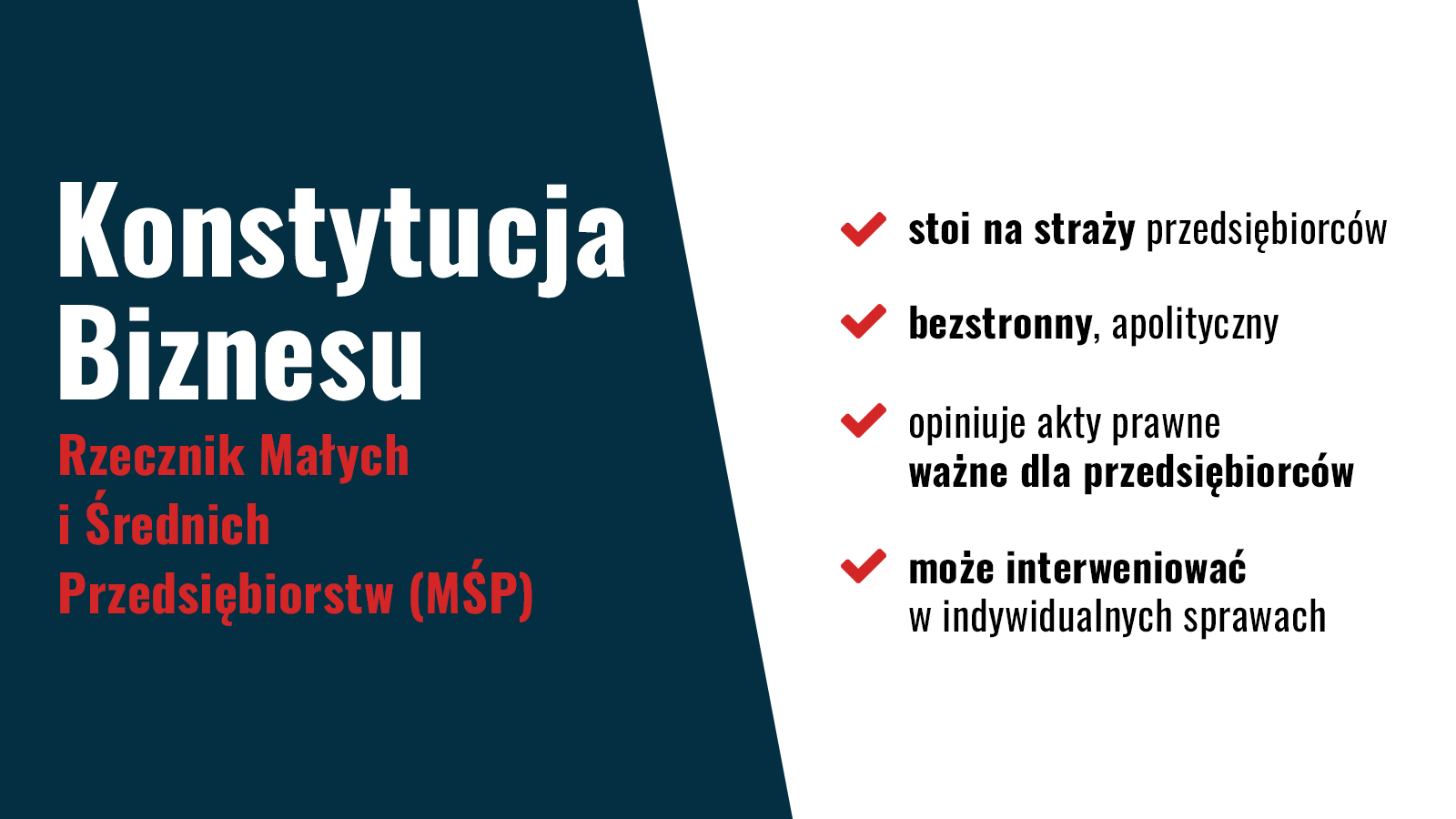 Strażnikiem tych fundamentów Konstytucji Biznesu jest m.in. Rzecznik Małych i Średnich Przedsiębiorców.