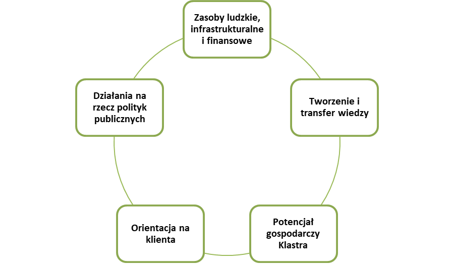 System wyboru Krajowych Klastrów Kluczowych (KKK) składa się z oceny pięciu obszarów funkcjonowania klastrów: zasoby ludzkie, infrastrukturalne i finansowe, potencjał gospodarczy klastra, tworzenie i transfer wiedzy, działania na rzecz polityk publicznych, orientacja na klienta. Wskazane obszary są niejako narzędziem oceny rozwoju klastra, jak również wskazują kierunek rozwoju polityki klastrowej kraju i priorytety naszego resortu.