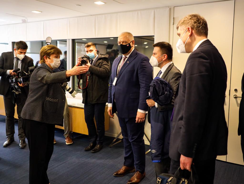 Podczas pierwszego dnia wizyty w USA szef MRiT spotkał się z Dyrektor Zarządzającą Międzynarodowego Funduszu Walutowego Kristaliną Georgiewą. Głównymi tematami rozmowy były kwestie związane z wyzwaniami stojącymi przed światową gospodarką w związku z pandemią, inflacją i zaburzeniami łańcuchów dostaw.