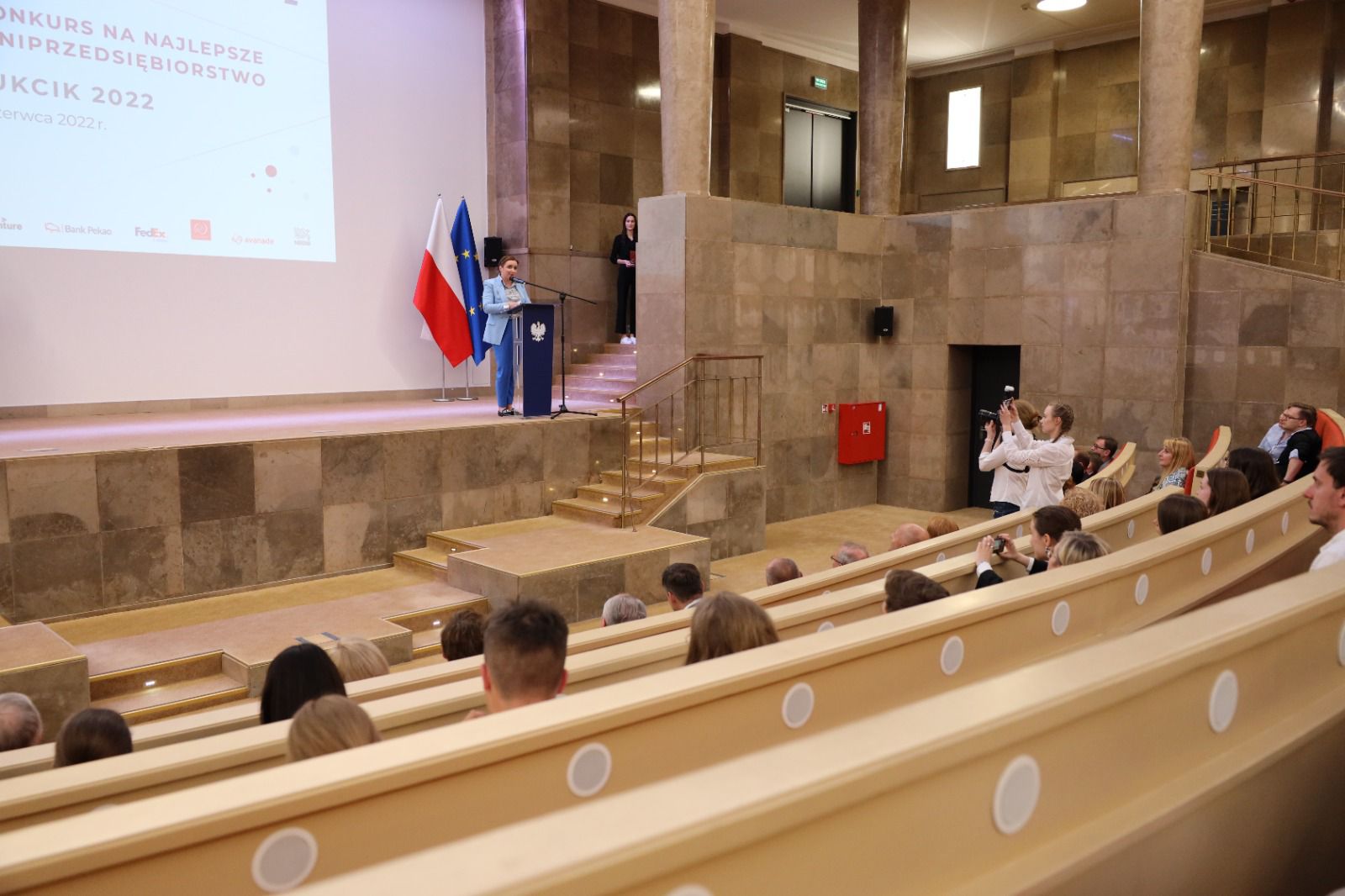 Jesteście dla mnie gigantami. Jestem pod wielkim wrażeniem tego, na co stawiacie akcent w waszych przedsiębiorstwach: ekologia, cyfryzacja i sprzedaż internetowa. Dzisiejsze wyniki pokazują też, że gospodarka ma twarz kobiety - mówiła wiceminister Olga Semeniuk podczas finału konkursu PRODUKCIK 2022.