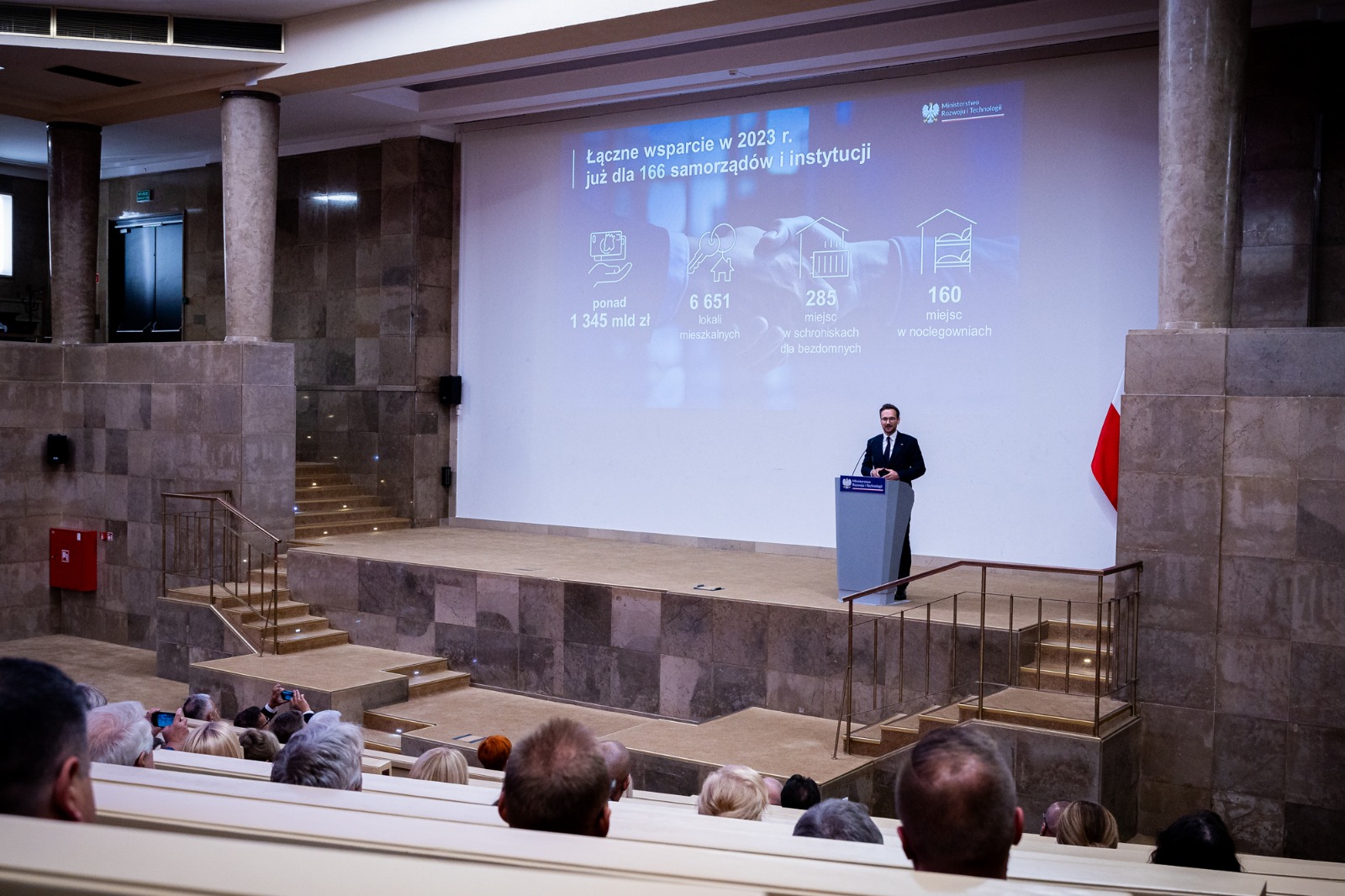 Dziś ważny dzień w rozwoju budownictwa społecznego i komunalnego. To największa z transz finansowych w ramach programu, który wspiera tani wynajem. Pieniądze trafią do miast i wsi w całym kraju i przyczynią się do realizacji inwestycji o łącznej wartości 610 mln zł. Oznacza, że już wkrótce osoby o średnich i umiarkowanych dochodach zyskają realną możliwość zamieszkania na swoim. Nie wszyscy spełniają kryteria programu Pierwsze Mieszkania, nie wszystkich stać na kredyt albo najem na warunkach rynkowych. Nie zapominamy o tych osobach i dlatego z taką konsekwencją realizujemy program wsparcia komunalnego budownictwa czynszowego