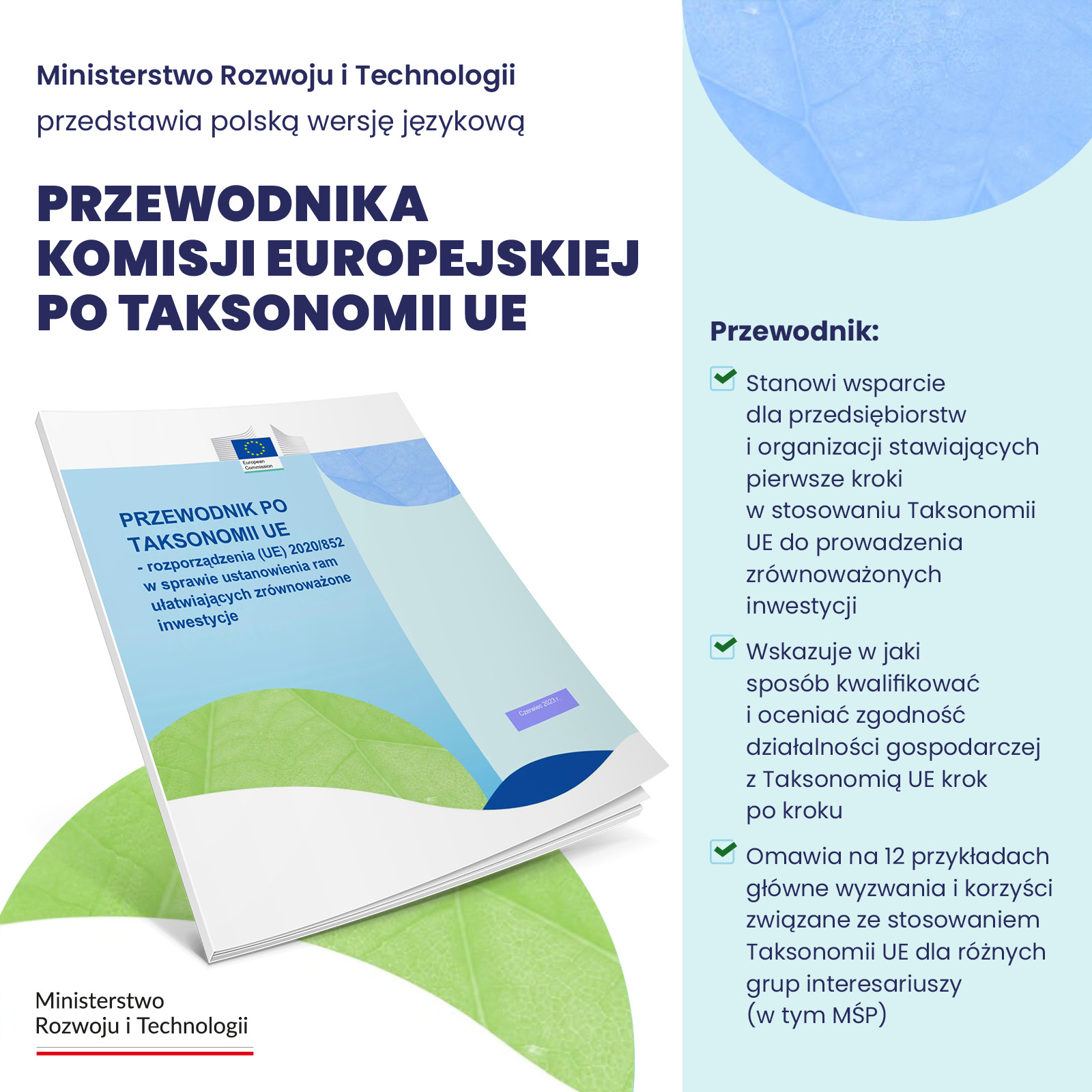 Zachęcamy wszystkich, a szczególnie przedsiębiorców, do zapoznania się z polską wersją językową przewodnika Komisji Europejskiej po Taksonomii UE.