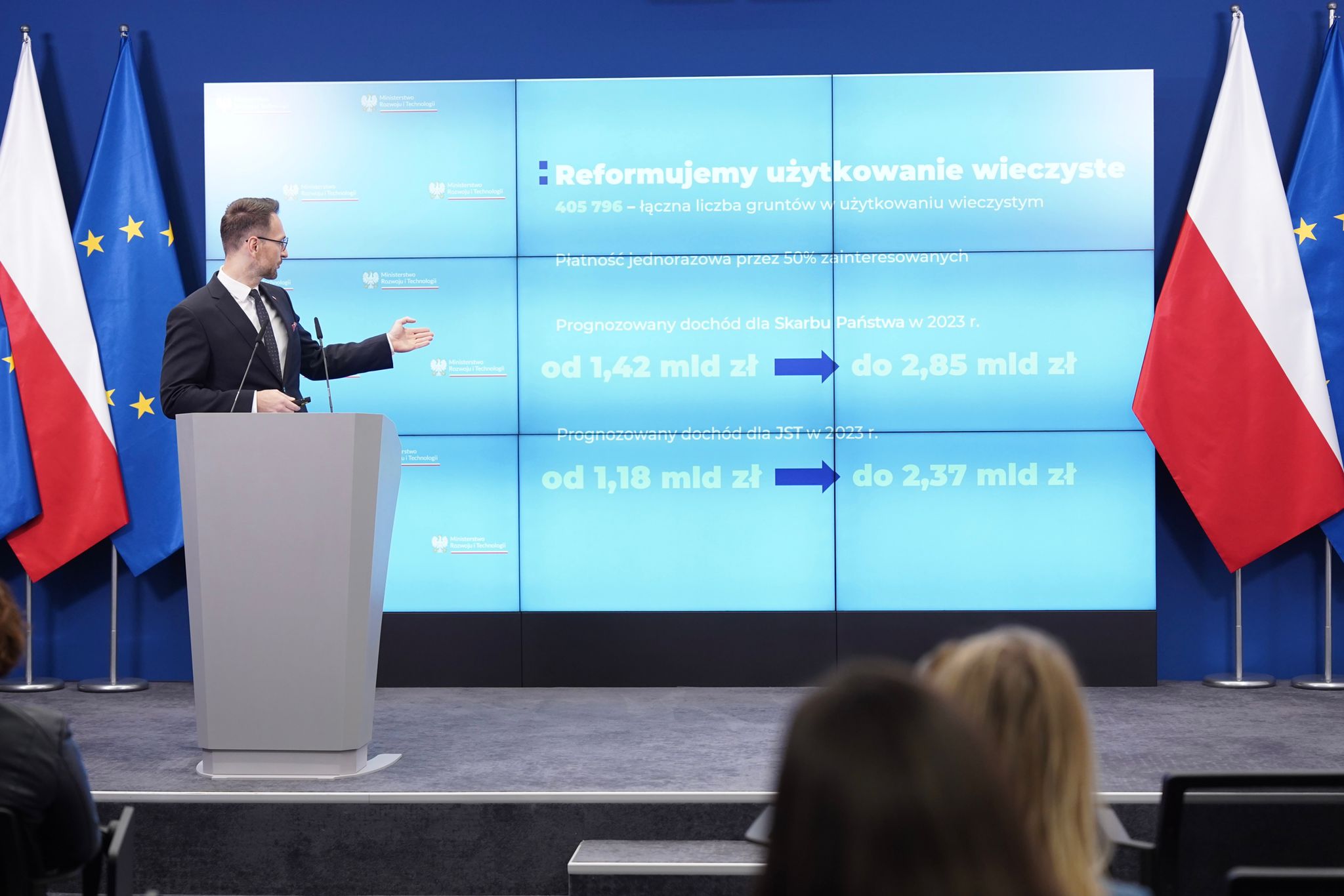 – Uwłaszczamy użytkowników wieczystych w Polsce. Koniec z niepewnością co do podwyżek opłat za użytkowanie wieczyste lub co do przedłużenia okresu obowiązywania umowy. Zagwarantowanie stabilnego prawa do gruntu przełoży się na wzrost potencjału gospodarczego kraju – stwierdził szef MRIT.