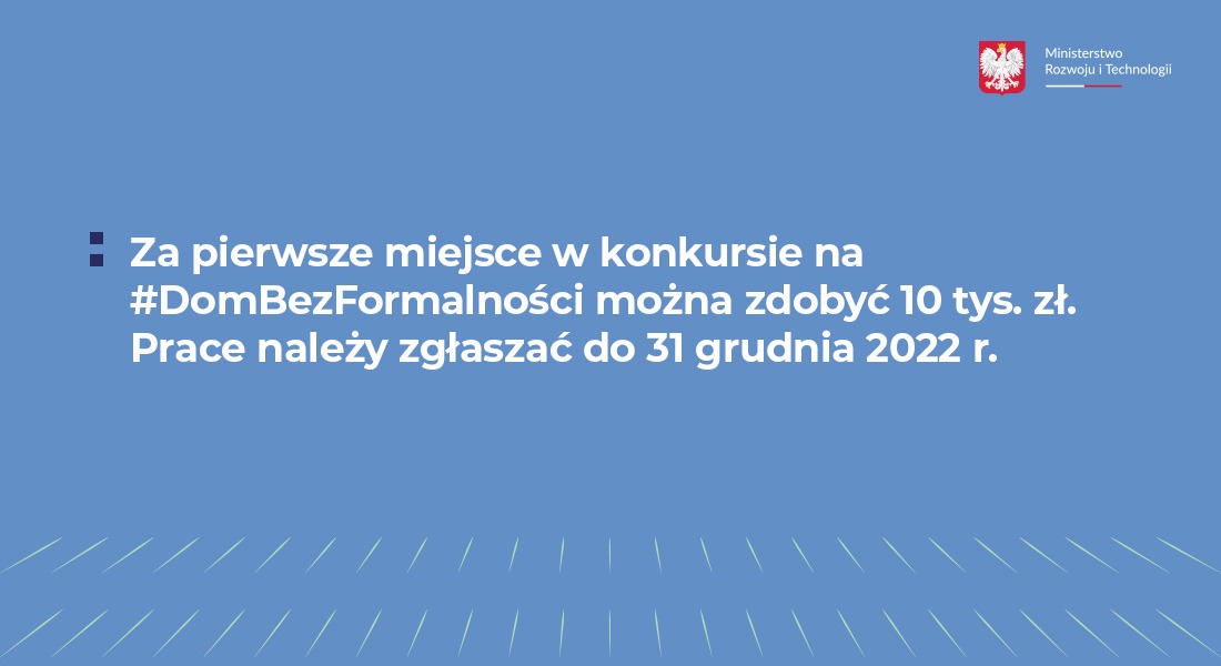 Konkurs to kontynuacja programu #DomBezFormalności, który zakłada możliwość budowy domu jednorodzinnego do 70 m. kw. jedynie na podstawie zgłoszenia.