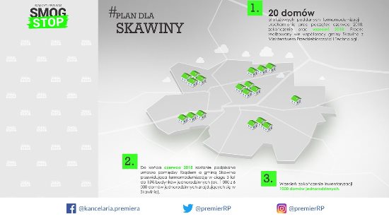 Minister Woźny zapewnił, że są zabezpieczone środki budżetowe na zrealizowanie identycznych przedsięwzięć z udziałem 23 miast z niechlubnej listy (PDF 93 KB) WHO, o liczebności do 100 tys. mieszkańców. Jak zaznaczył takich miast – łącznie ze Skawiną – jest 22, a ich terenie mieszka ponad 770 tys. Polaków.