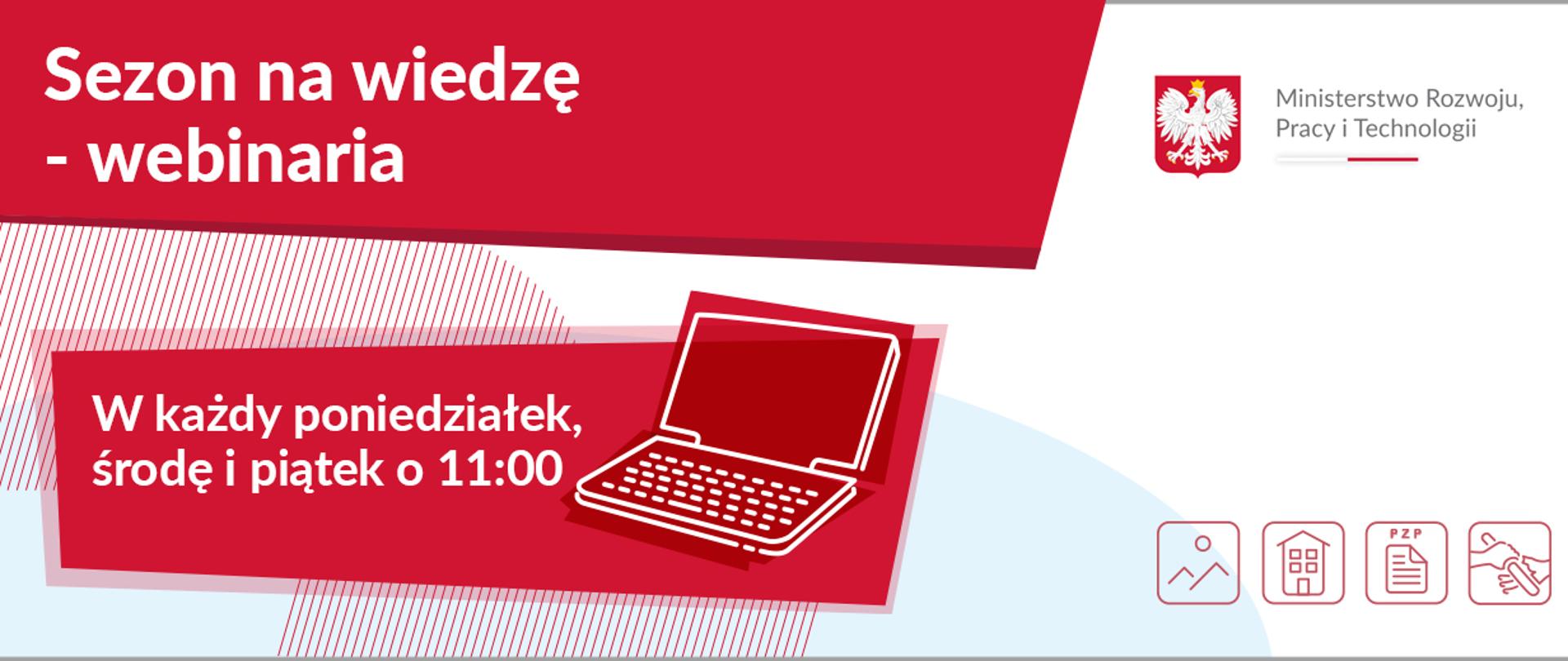 Webinaria będzie można oglądać w poniedziałki, środy i piątki zawsze o godz. 11.00 na https://www.gov.pl/web/rozwoj-praca-technologia/sezon-na-wiedze-webinaria i na kanale YouTube Ministerstwa Rozwoju, Pracy i Technologii.