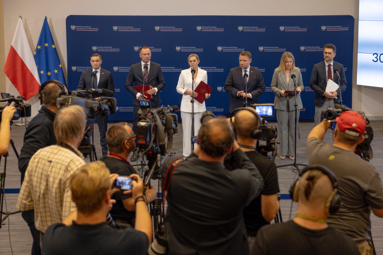 Podczas konferencji prasowej zorganizowanej 15 września 2025 r. w siedzibie MSWiA, ministrowie Marcin Kierwiński, Magdalena Roguska, Barbara Nowacka, Piotr Malepszak, Piotr Borys i Michał Jaros przedstawili informację z działań pomocowych i inwestycyjnych po powodzi, która w ubiegłym roku spustoszyła województwa dolnośląskie, opolskie, śląskie i lubuskie.