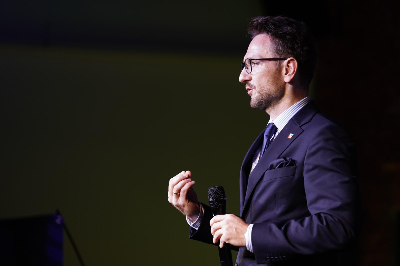 Wydarzenie Re_Enter Ukraine rozpoczęło się od wystąpienia ministra rozwoju i technologii Waldemara Budy, który mówił o zaangażowaniu polskich firm w odbudowę Ukrainy po wojnie.