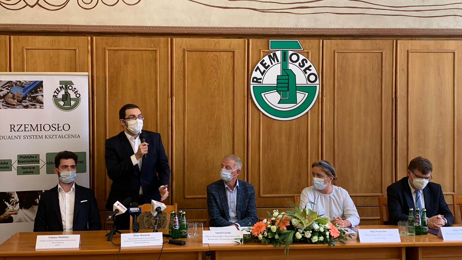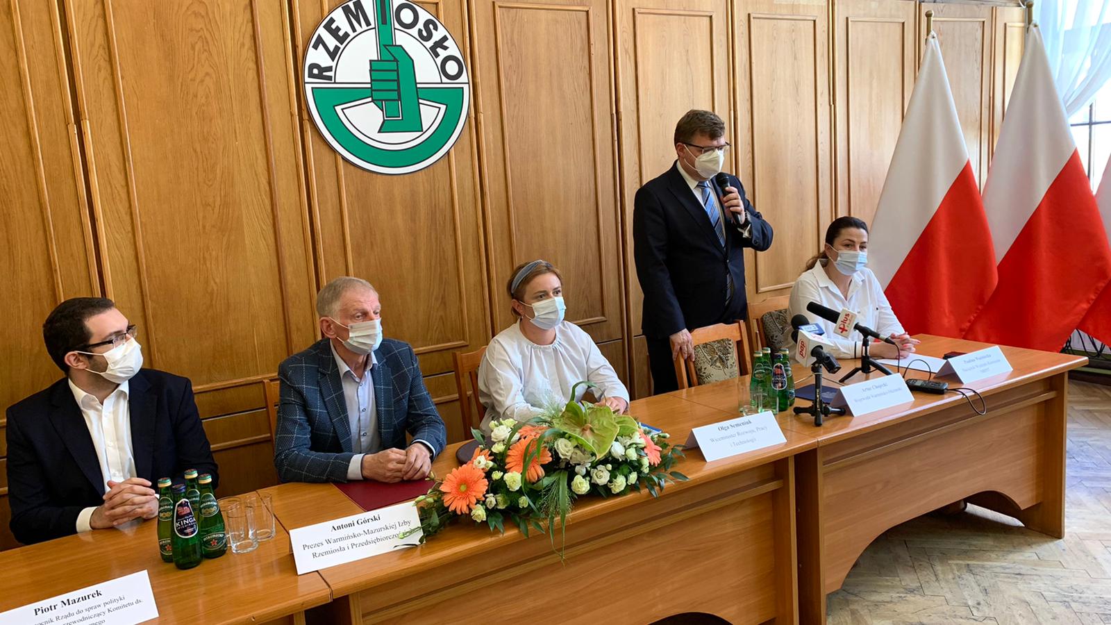 Podczas wizyty w stolicy Warmii i Mazur Minister Semeniuk towarzyszyli: minister w Kancelarii Premiera, pełnomocnik rządu ds. polityki młodzieżowej Piotr Mazurek, wojewoda warmińsko-mazurski Artur Chojecki oraz prezes Warmińsko-Mazurskiej Izby Rzemiosła i Przedsiębiorczości Antoni Górski.