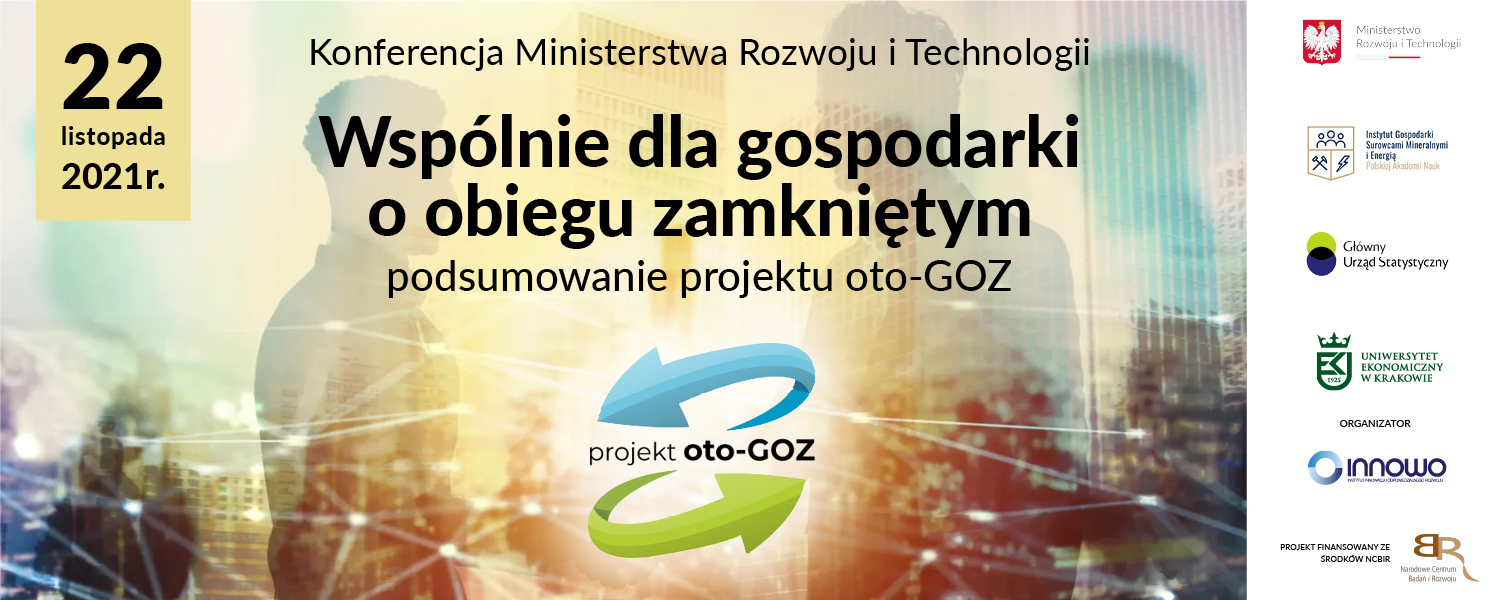 Jest to wydarzenie wieńczące trzyletni rządowy projekt OTO-GOZ współfinansowany przez Narodowe Centrum Badań i Rozwoju w I konkursie programu „Społeczny i gospodarczy rozwój Polski w warunkach globalizujących się rynków” GOSPOSTRATEG. Celem projektu było opracowanie systemu wskaźników pomiarowych, umożliwiających ocenę postępu w transformacji w kierunku gospodarki o obiegu zamkniętym oraz wpływu gospodarki cyrkularnej na rozwój społeczno-gospodarczy na poziomie mezoekonomicznym (regionów) i makroekonomicznym (gospodarki narodowej). Projekt realizowany jest przez konsorcjum, którego Liderem jest Ministerstwo Rozwoju i Technologii, a pozostali partnerzy to Instytut Gospodarki Surowcami Mineralnymi i Energią PAN, Główny Urząd Statystyczny oraz Uniwersytet Ekonomiczny w Krakowie.