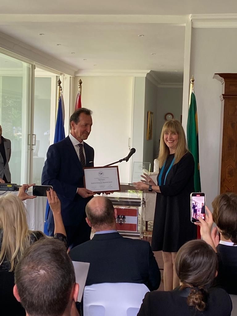 Andrzej Kanthak, Ambasador RP w RPA wziął udział w uroczystości wręczenia Austriackiej Nagrody Pamięci o Holokauście (AHMA) dyrektorce i założycielce Centrum Holokaustu i Ludobójstwa w Johannesburgu, Tali Nates.
