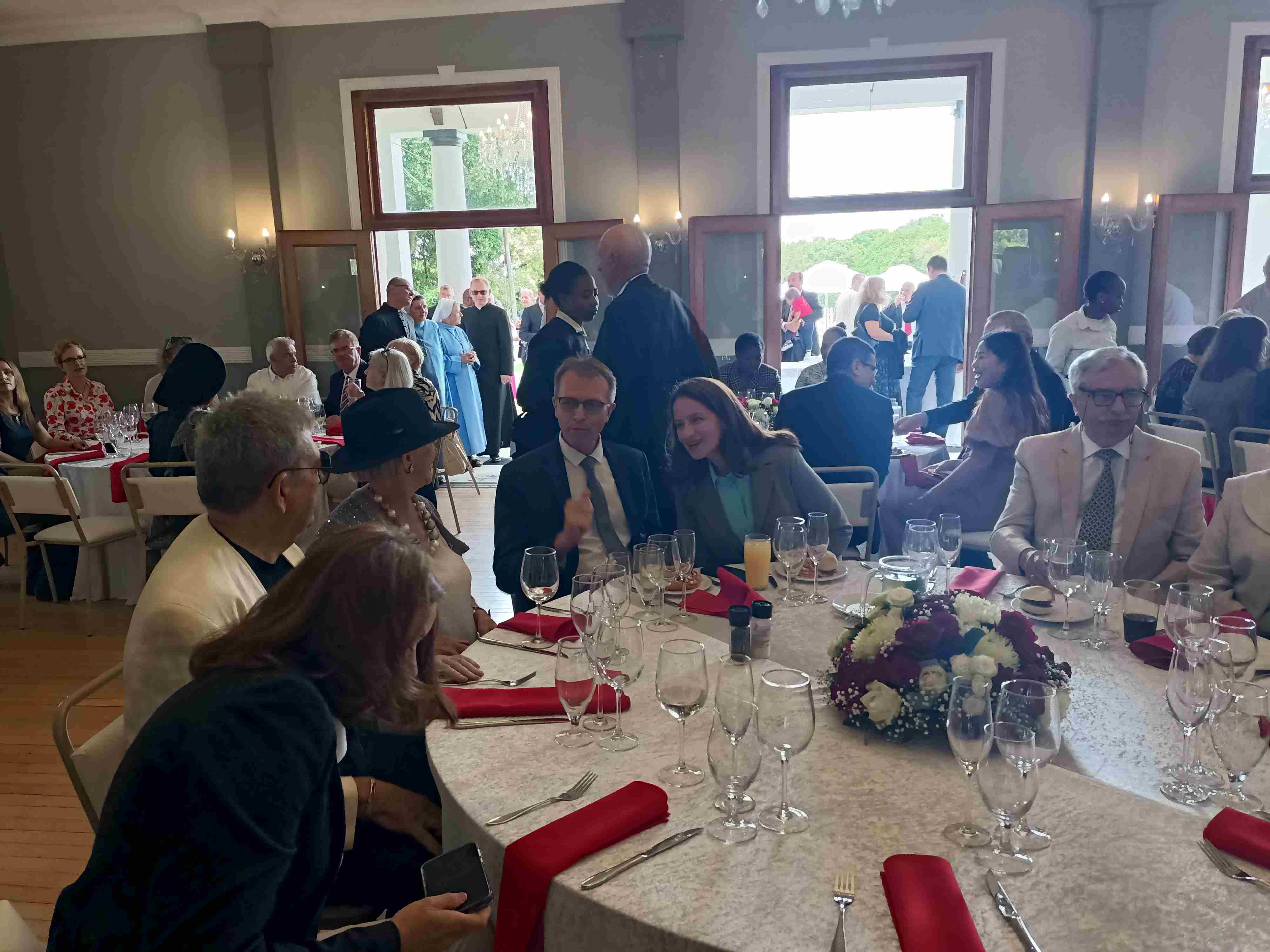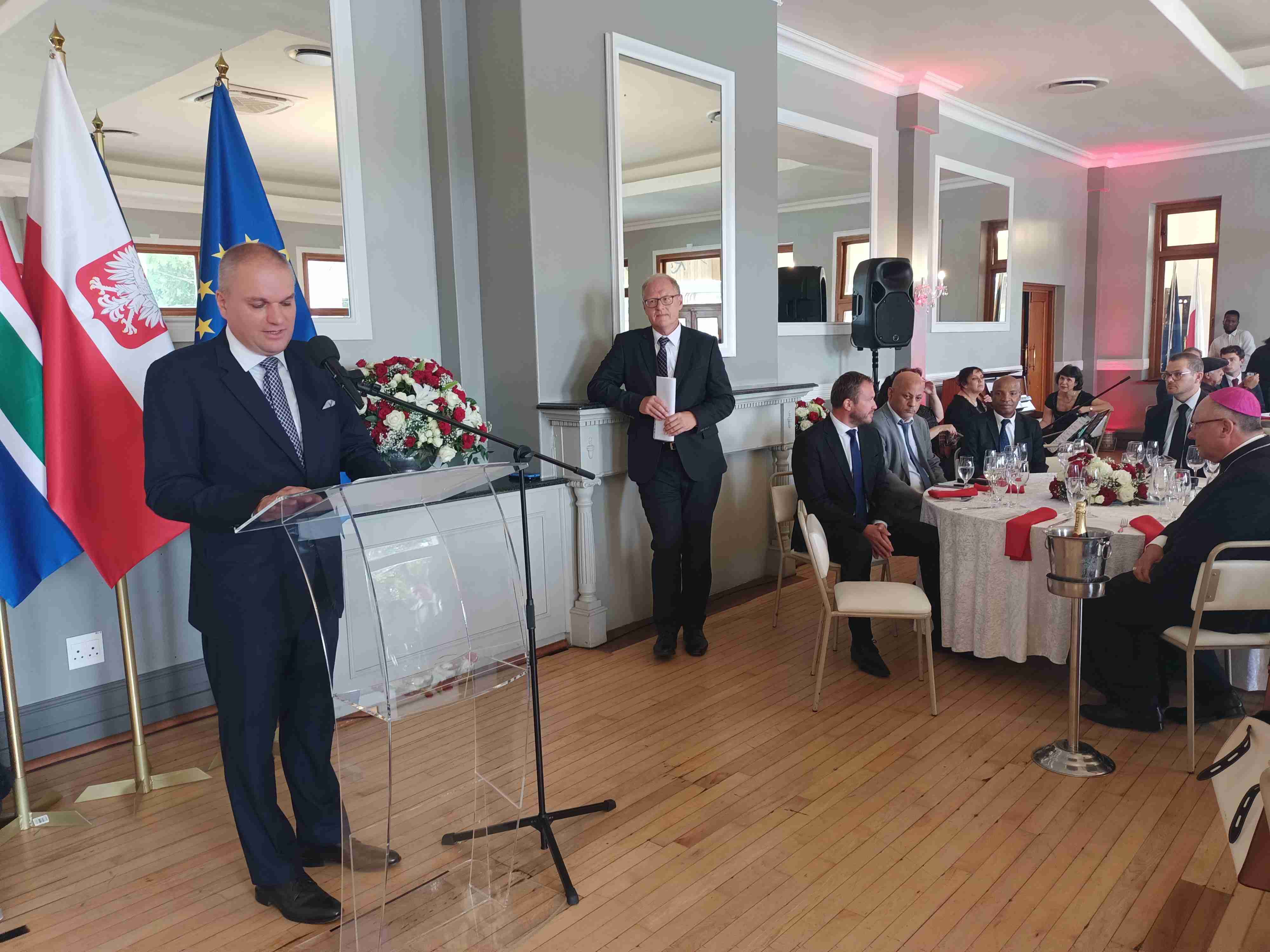 Gościem honorowym był Marlon Geswint, reprezentujący Skarb Państwa RPA (p.o. dyrektora generalnego w Wydziale Gospodarki Międzynarodowej i Regionalnej) oraz przebywający z wizytą w RPA, minister spraw zagranicznych Estonii, Margus Tsahkna. Ambasador Adam Burakowski wygłosił okolicznościowe przemówienie, w którym wskazał na silne więzi i bardzo dobrą współpracę pomiędzy Polską a Republiką Południowej Afryki. Pan Ambasador przypomniał również o dwóch ważnych wydarzeniach w historii stosunków polsko-południowoafrykańskich: 80. rocznicy „Lotów nad Warszawę”, misji wojskowej południowoafrykańskich wojsk powietrznych (South African Air Force) oraz alianckich lotników, którzy uczestniczyli w heroicznych lotach mających na celu wsparcie Powstania Warszawskiego w 1944 r., oraz 81. rocznicy przyjęcia przez rząd Unii Południowej Afryki grupy 500 polskich dzieci i ich opiekunów, ocalałych z deportacji na Syberię, i udzielenia im bezpiecznego schronienia w Oudtshoorn. W okolicznościowych przemówieniach wygłoszonych przez gości honorowych, Marlon Geswint położył duży nacisk na trwający konflikt izraelsko-palestyński oraz konieczność działań, które doprowadziłyby do pokoju, a także mówił na temat współpracy gospodarczej Polska – RPA. Marlon Geswint bardzo pochlebnie mówił o działalności Polski w ramach ONZ i dążeniach mających na celu utrzymanie pokoju na świecie. Minister Margus Tsahkna podkreślił silne więzi łączące Polskę i Estonię, a także mówił o współpracy na linii Afryka – UE.