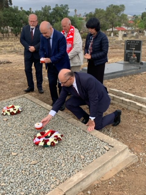 24 września br., przemawiając na uroczystości odsłonięcia pomnika upamiętniającego polskie dzieci i ich dorosłych opiekunów, którzy znaleźli bezpieczne schronienie w Oudtshoorn w 1943 r., Pani Minister podziękowała wszystkim zaangażowanym w realizację tego projektu, m.in. Prezesowi Związku Sybiraków w Afryce Południowej, Stefanowi Szewczukowi, oraz przedstawicielom Muzeum CP Nel w Oudtshoorn.