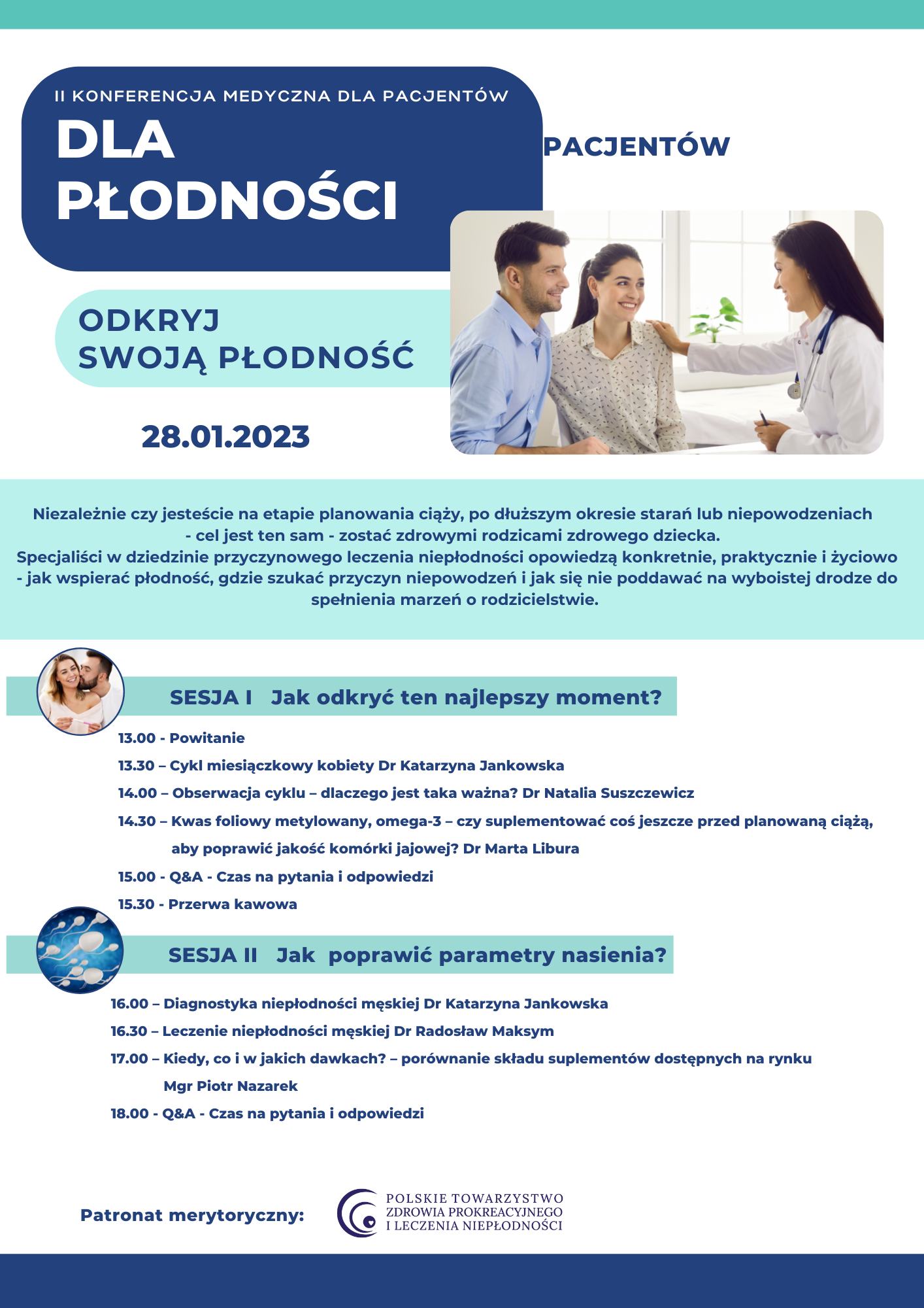 Strona internetowa wydarzenia: https://procreatio.pl/konferencje-pacjent/konferencja-dla-plodnosci/