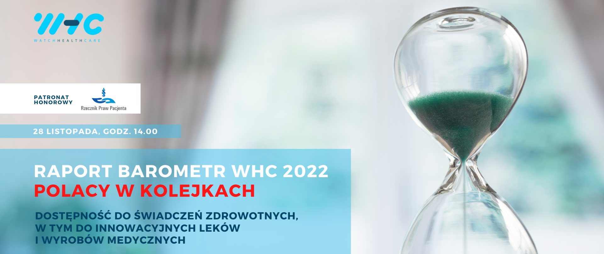 Podczas wydarzenia omówione zostaną wyniki najnowszego raportu "Barometr WHC, dostępność do świadczeń zdrowotnych, w tym do innowacyjnych leków i wyrobów medycznych w Polsce".