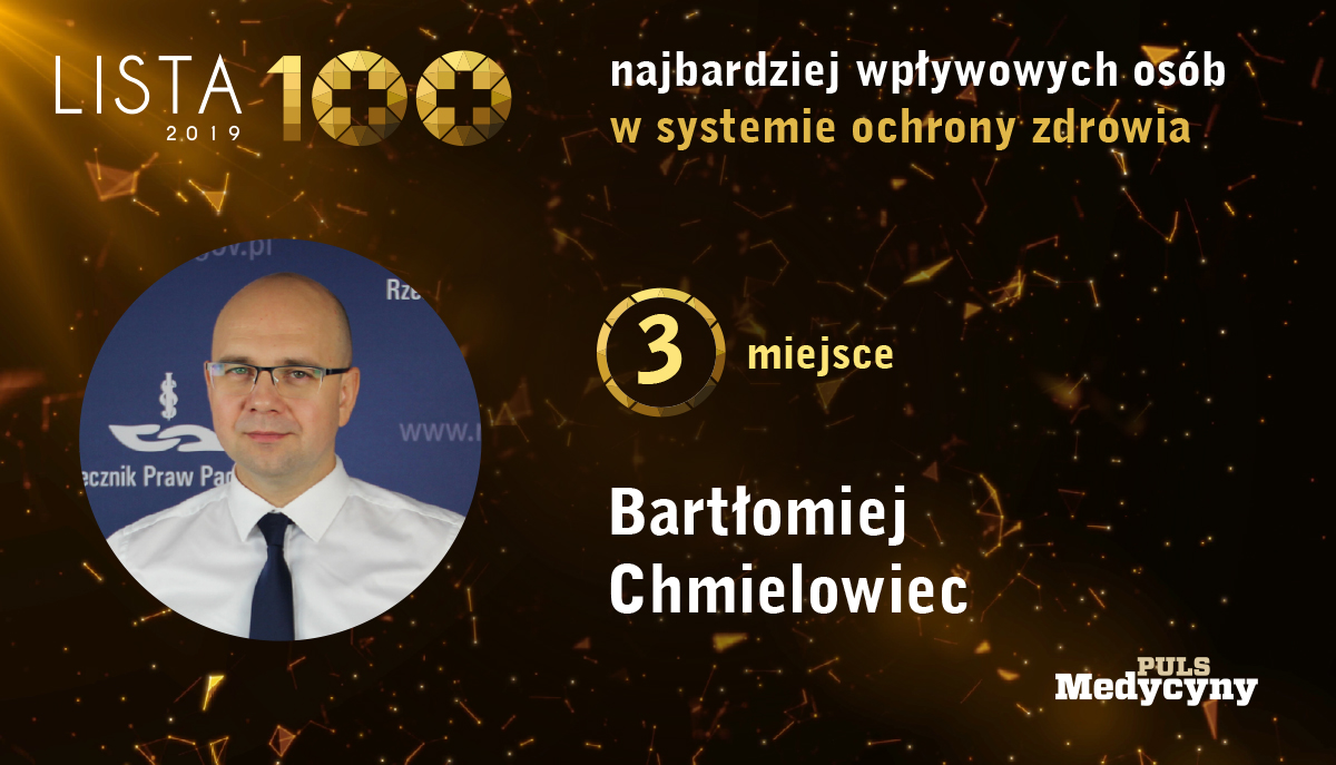 Rzecznik Praw Pacjenta, Bartłomiej Chmielowiec zajął 3 miejsce w rankingu stu najbardziej wpływowych osób w polskim systemie ochrony zdrowia za rok 2019.