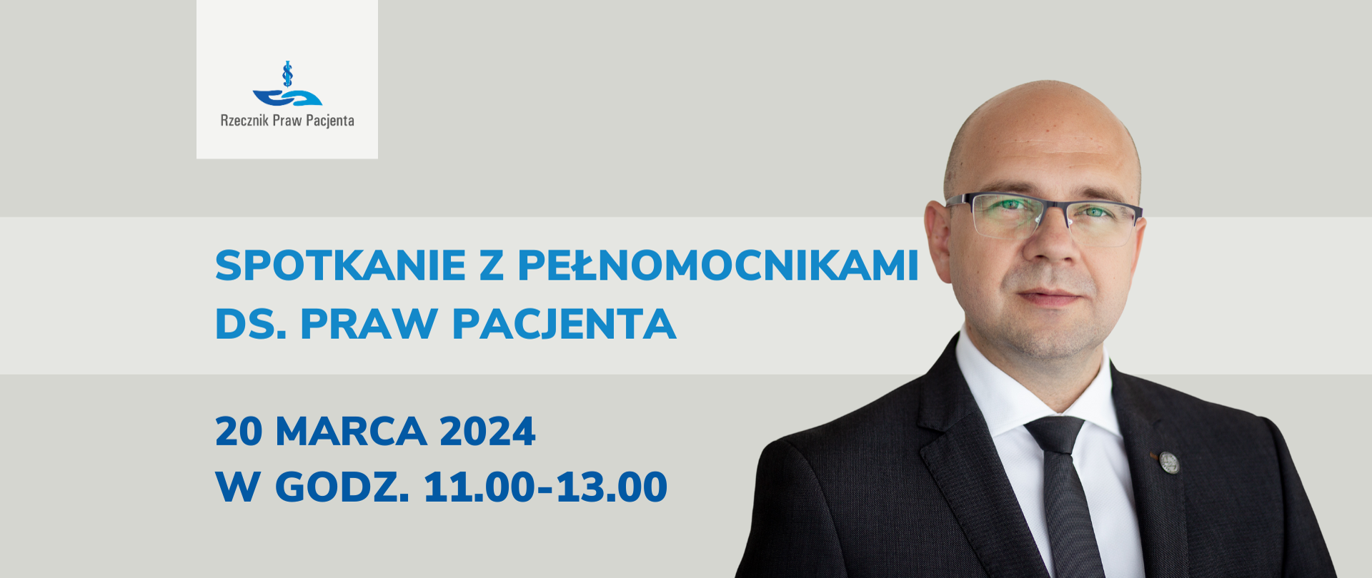 Rzecznik Praw Pacjenta Bartłomiej Chmielowiec, serdecznie zaprasza pełnomocników ds. praw pacjenta na spotkanie online, które odbędzie się w środę, 20 marca 2024 r., w godzinach 11:00-13:00.