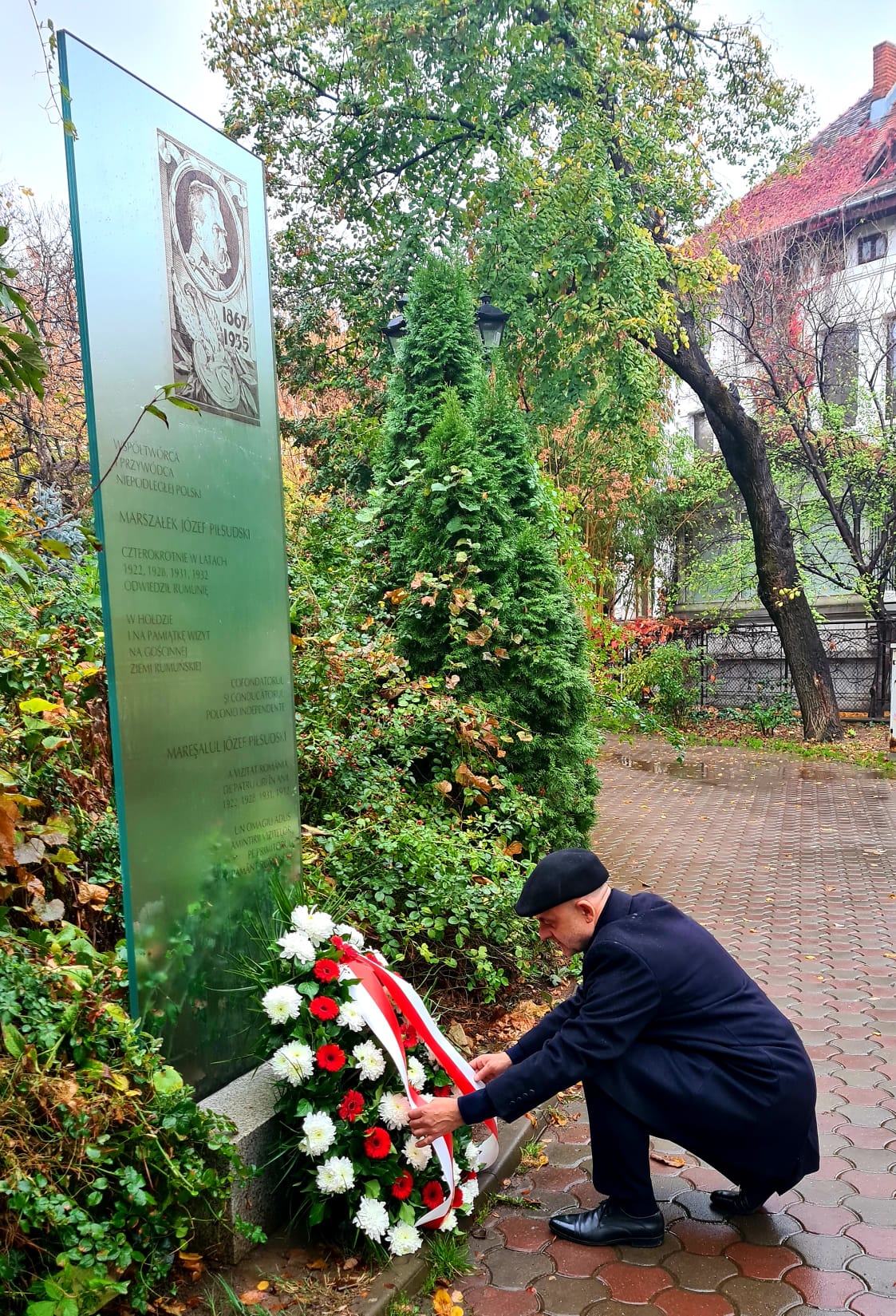 11 listopada Ambsador Maciej Lang i Konsul Jarosław Szkirpan złożyli wiązankę pod pomnikiem Marszałka Józefa Piłsudskiego w stołecznym parku Ioanid.