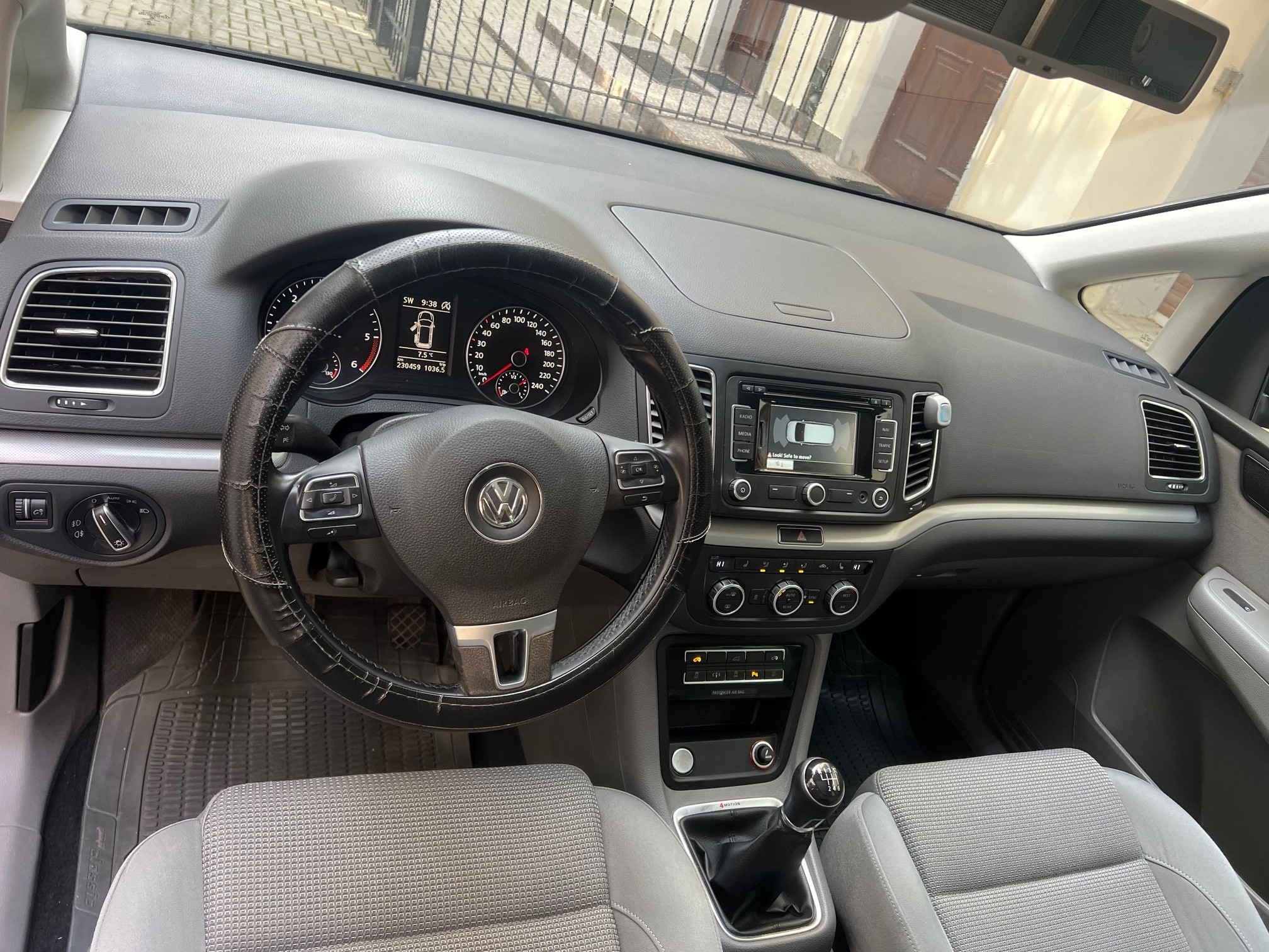 Samochód osobowy Volkswagen Sharan, rok produkcji 2014, silnik wysokoprężny o pojemności 1968 cm³, mocy 103 kW, 6-biegowa skrzynia manualna, kolor granatowy, przebieg około 230 459 km. Pojazd jest w dobrym stanie technicznym, wydajny i dobrze utrzymany.