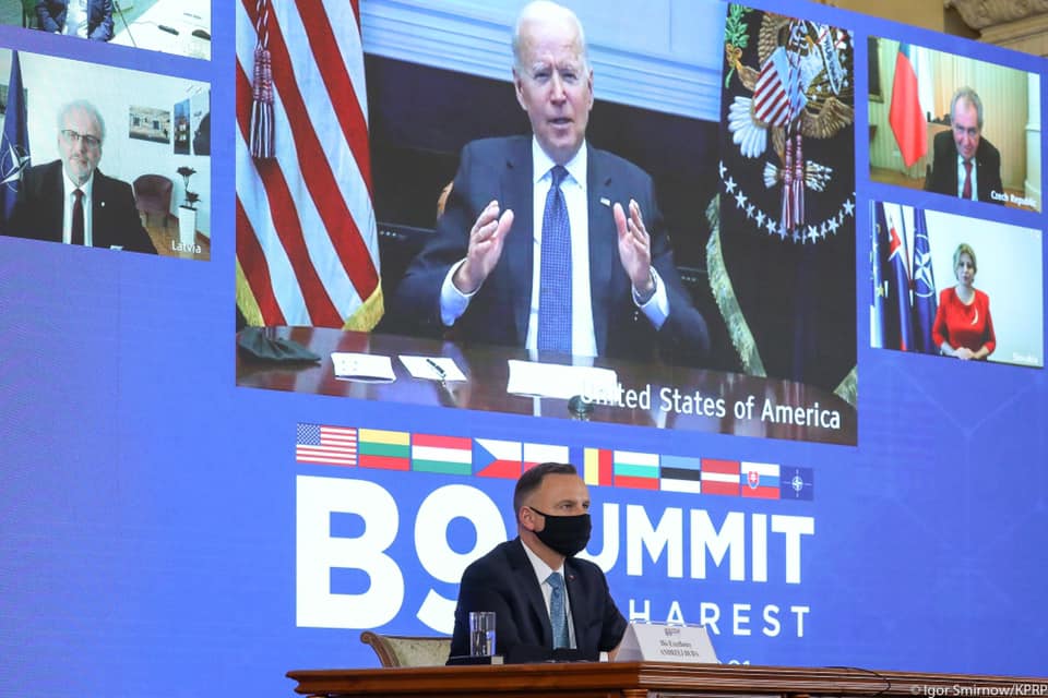 Po południu odbył się szczyt formatu Bukaresztańskiego (B9), którego Prezydent Andrzej Duda był współgospodarzem. W spotkaniu zorganizowanym w formule hybrydowej uczestniczyli również Prezydent Stanów Zjednoczonych Joe Biden i Sekretarz Generalny NATO Jens Stoltenberg. Szefowie państw biorący udział w szczycie przyjęli wspólną deklarację, w której stwierdzają, że agresywne działania Rosji zagrażają bezpieczeństwu euroatlantyckiemu.