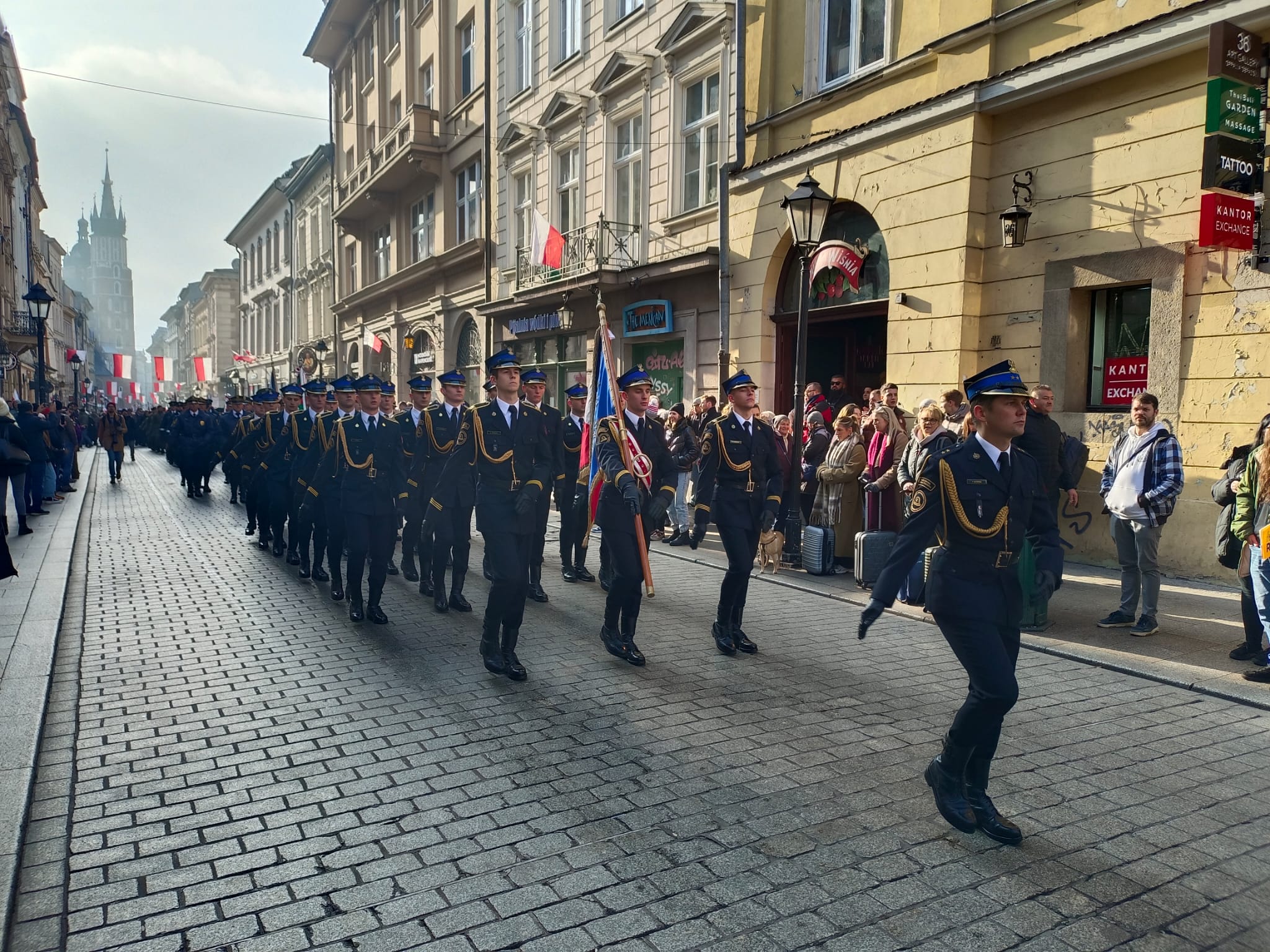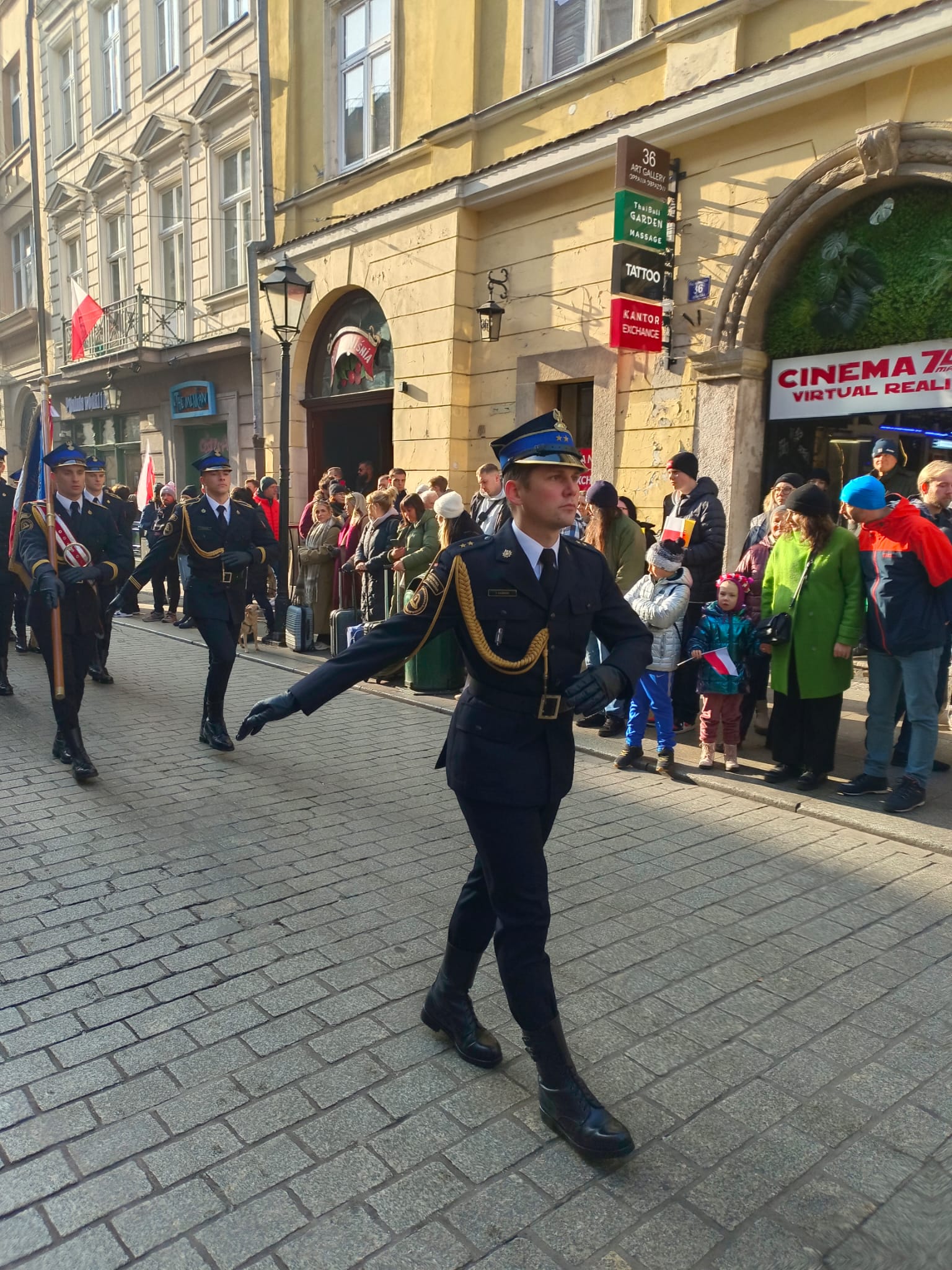 11 listopada 2024 roku odśpiewaliśmy także hymn, a reprezentacja Szkoły wzięła udział w zabezpieczanym między innymi przez naszych słuchaczy, Krakowskim Biegu Niepodległości.