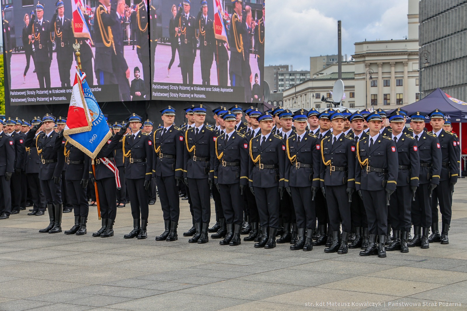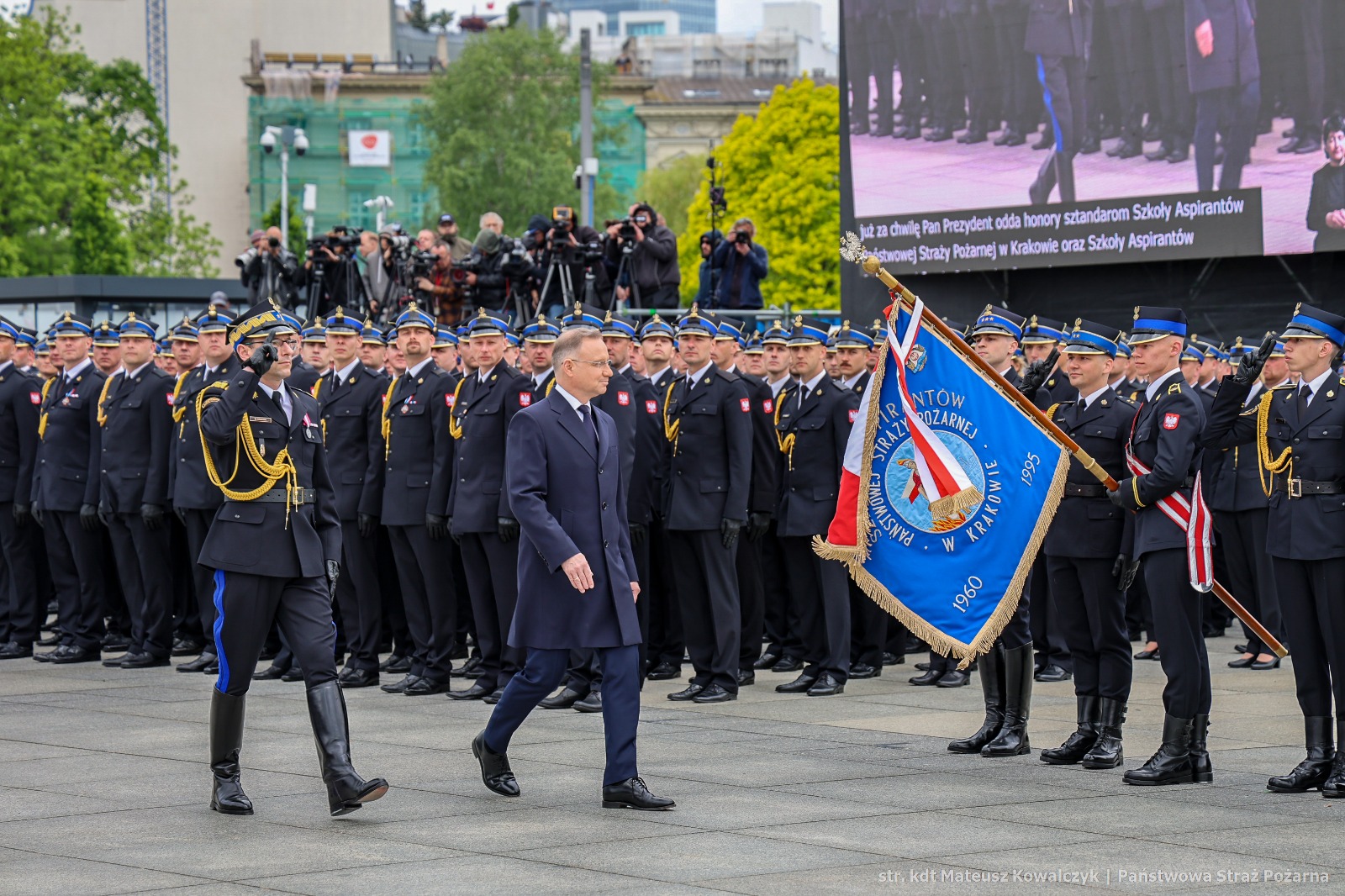 4 maja 2025 roku, w stolicy, dumnie reprezentowaliśmy naszą Szkołę podczas uroczystych obchodów Dnia Strażaka 2025. W zorganizowanym na Placu Józefa Piłsudskiego wydarzeniu uczestniczył Komendant Szkoły Aspirantów PSP w Krakowie – nadbryg. Piotr Filipek, nasza kompania reprezentacyjna pod dowództwem kpt. Mateusza Niepsuja oraz poczet sztandarowy.