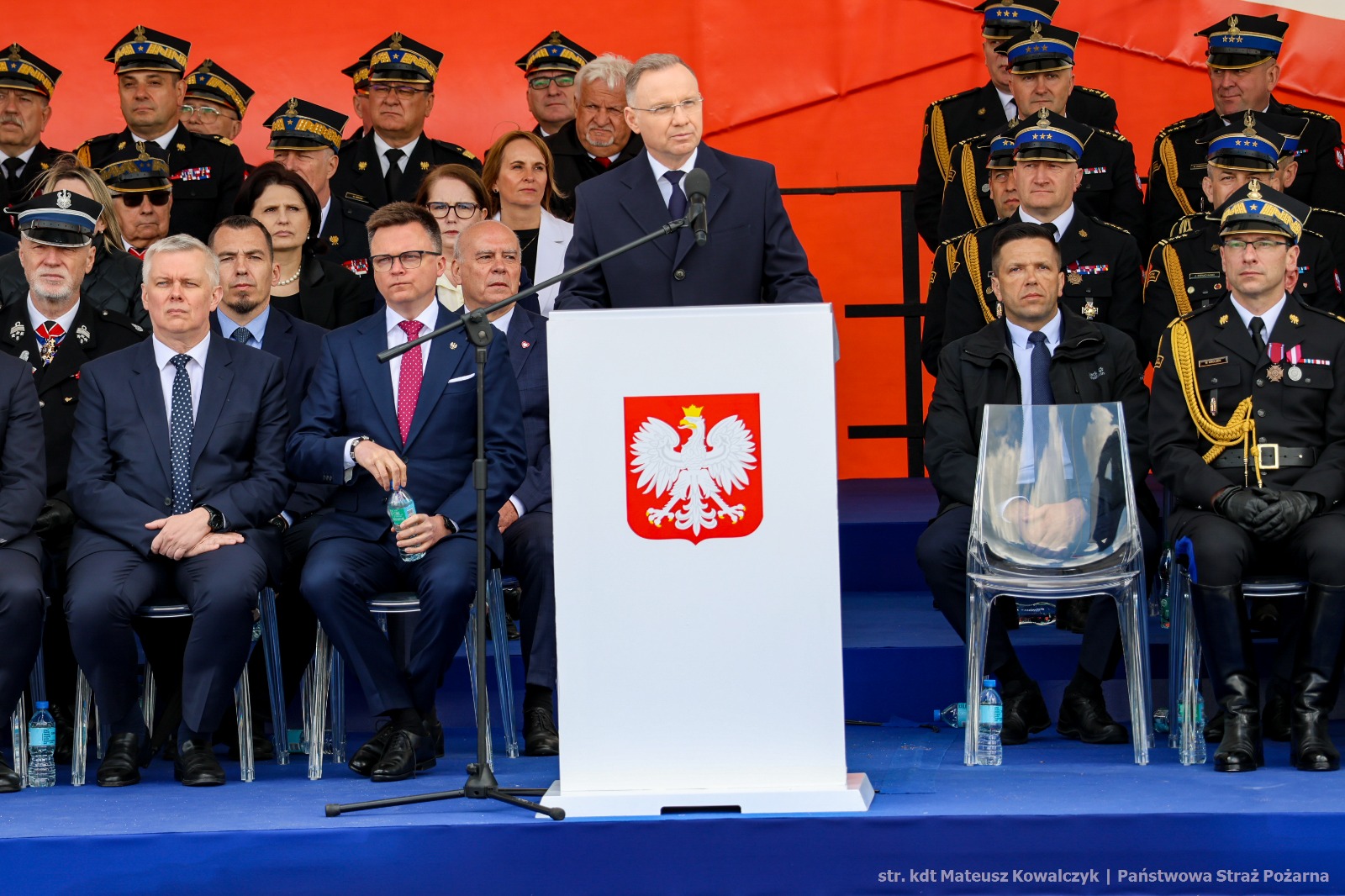 W okolicznościowych przemówieniach, pełnych wyrazów uznania i wdzięczności, głos zabrali między innymi: Komendant Główny PSP nadbryg. Wojciech Kruczek, Prezydent RP Andrzej Duda, Minister Spraw Wewnętrznych i Administracji Tomasz Siemoniak oraz przewodniczący Związku Ochotniczych Straży Pożarnych RP dh Waldemar Pawlak.