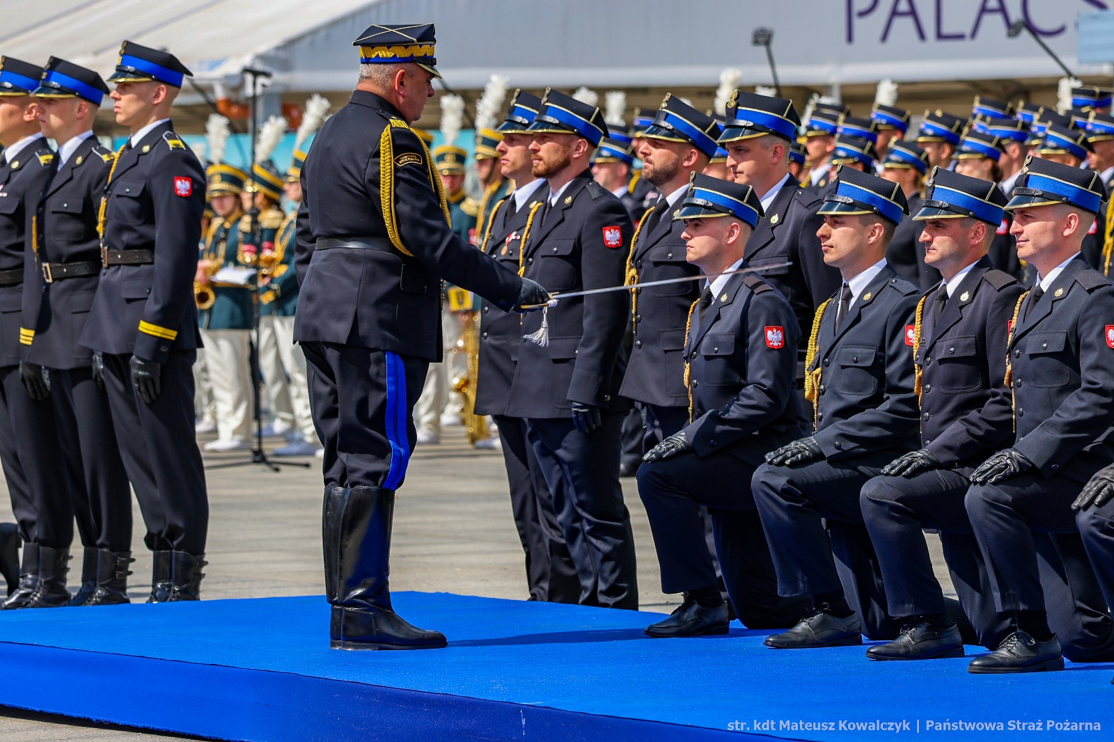 Jednym z najważniejszych punktów uroczystości była uroczysta promocja na stopnień młodszego kapitana Państwowej Straży Pożarnej, którą otrzymało 422 strażaków, w tym pełniący na co dzień służbę w naszej Szkole asp. Konrad Miśkowiec. Równie podniosłym elementem było wręczenie aktów mianowana na stopień nadbrygadiera.