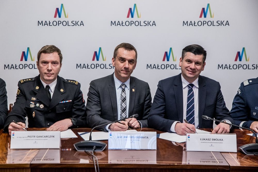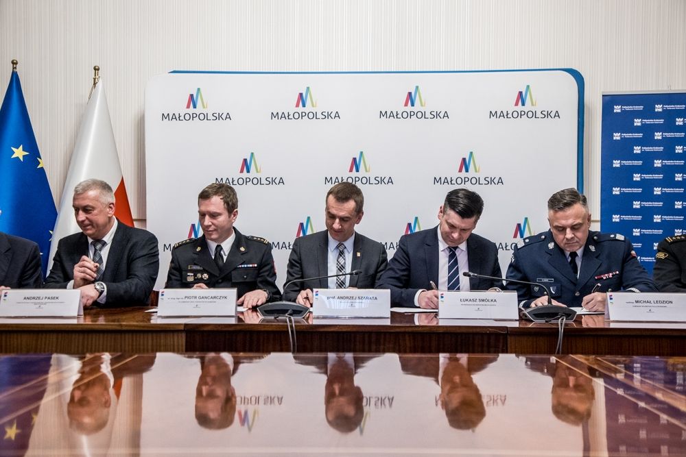 List intencyjny w sprawie utworzenia „Centrum edukacyjno-badawczego i szkolenia służb ratowniczych w Małopolsce” podpisali: marszałek Witold Kozłowski i wicemarszałek Łukasz Smółka, prof. Andrzej Szarata - rektor Politechniki Krakowskiej, Andrzej Pasek - dyrektor Wydziału Bezpieczeństwa i Zarządzania Kryzysowego Małopolskiego Urzędu Wojewódzkiego w Krakowie, Tomasz Kosecki - dyrektor Muzeum Lotnictwa Polskiego w Krakowie, Piotr Szymański - dyrektor Małopolskiego Centrum Nauki „COGITEON”, dr hab. Dariusz Zuba – dyrektor Instytutu Ekspertyz Sądowych im. prof. dra Jana Sehna w Krakowie, st. bryg. Piotr Gancarczyk – p.o. Komendant Szkoły Aspirantów Państwowej Straży Pożarnej w Krakowie, st. bryg. mgr inż. Paweł Knapik, Komendant Miejski Państwowej Straży Pożarnej w Krakowie, nadinsp. Michał Ledzion, Komendant Wojewódzki Policji w Krakowie i Adam Reza, przewodniczący Polskiego Stowarzyszenia Biegłych Sądowych do Spraw Wypadków Drogowych.